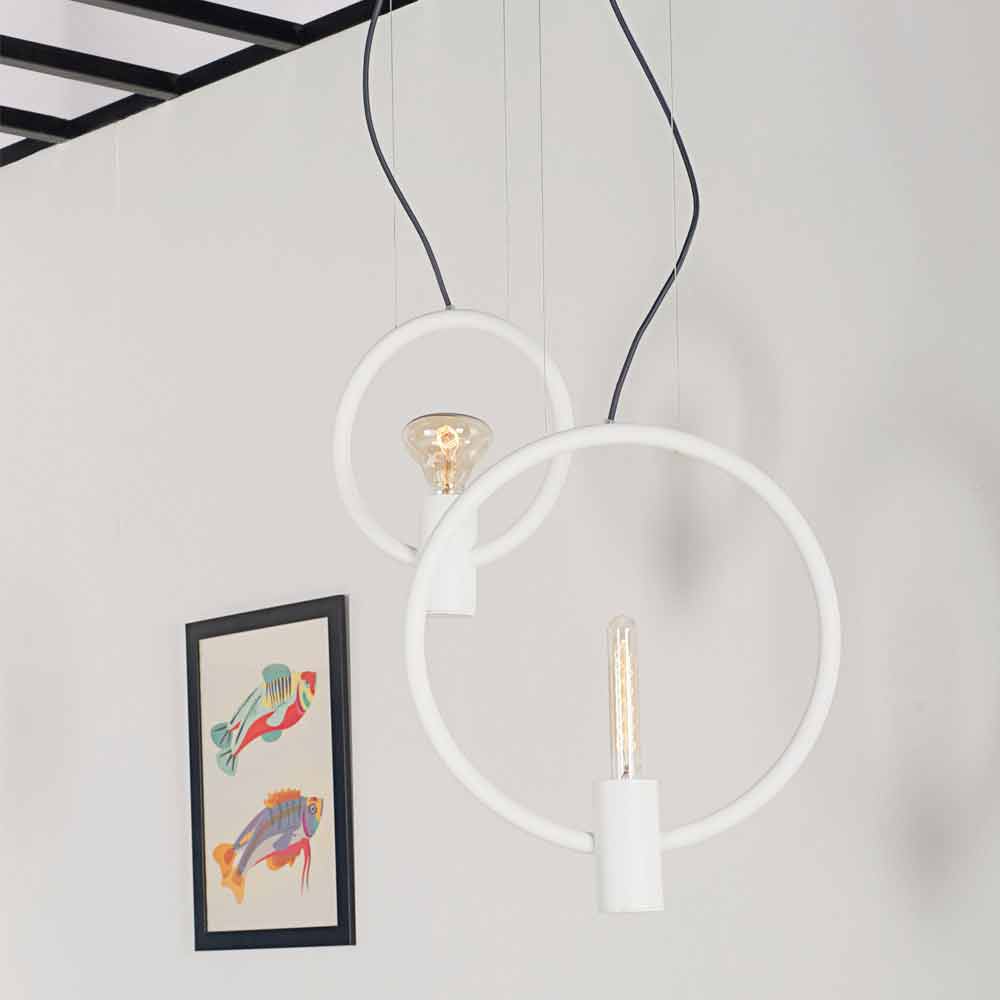 RAL painted steel structure with a round shape available in two sizes to be able to satisfy the most varied requests. Ideal for lighting environments such as kitchens, bedrooms but also lounges and dining rooms with a modern and extravagant design.