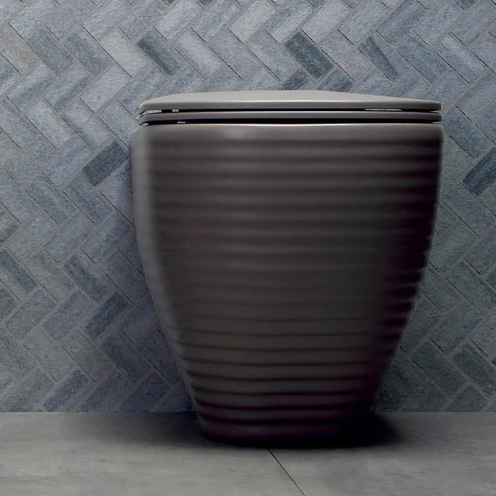 It comes complete with ground or wall discharge connection. Customize your bathroom with functional and decorative furniture at the same time. The toilet vase Trabia confer a touch of modernity thanks to his minimal but refined style, characterized by horizontal grooves. It is available in different colours and in shiny or matt finish.