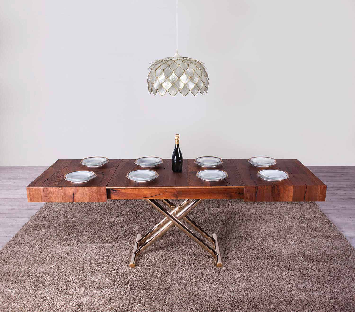 transformable coffee table is outlined by elegant and versatile queues capable of furnishing your domestic and contract environments with refinement and practicality.