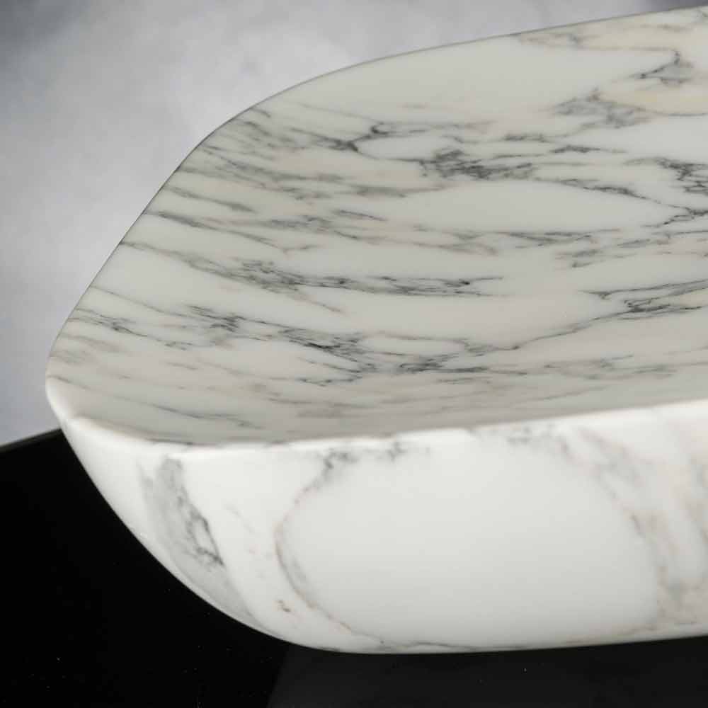 Made in Italy decorative tray Ā in white Carrrara marble , a precious variety of marble that is made through the processing of natural stones allows to obtain more complex shapes. An object of intrinsic elegance that arises from the encounter between the study of natural phenomena and the interaction of different materials with the technologies used by man. The result is a sophisticated and versatile piece of furniture which allows it to be used as a real tray, as a refined centerpiece but also as a pocket emptier if positioned at the entrance or as a simple decorative element in any place in the house, proving capable of giving a extra touch to the furniture thanks to the timeless elegance of marble and its wonderful veins.