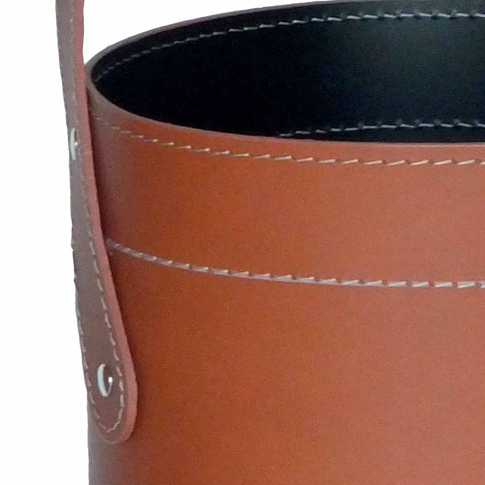 It is made entirely of regenerated leather, both internally and externally, with visible stitching. The bottom is made of plywood, also covered in leather. Inside there is a practical drip tray in plastic material. Different colours are available, choose the one you prefer.