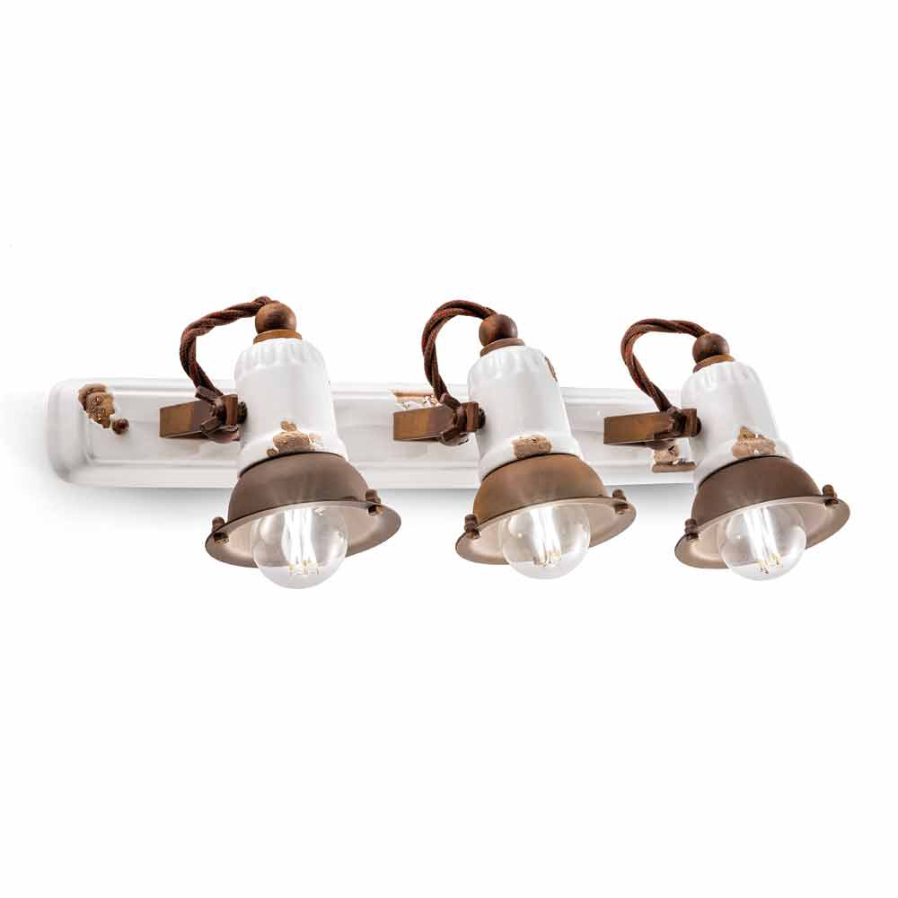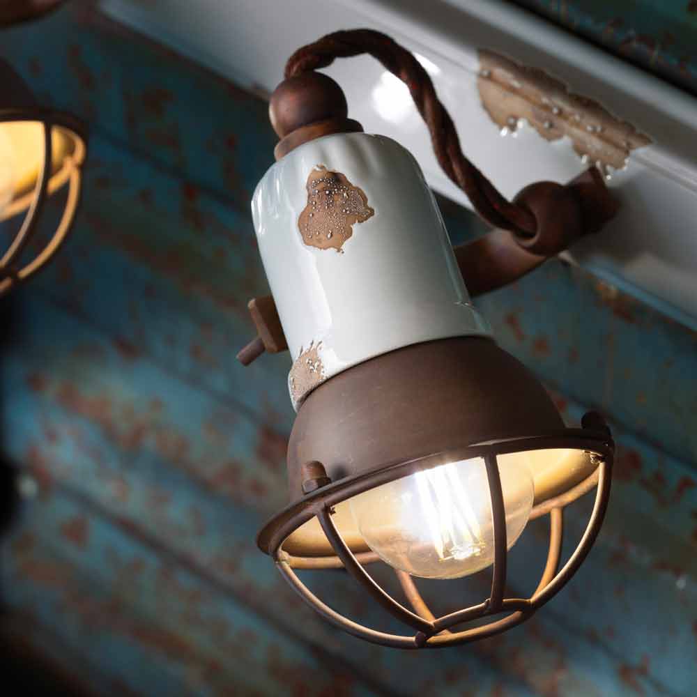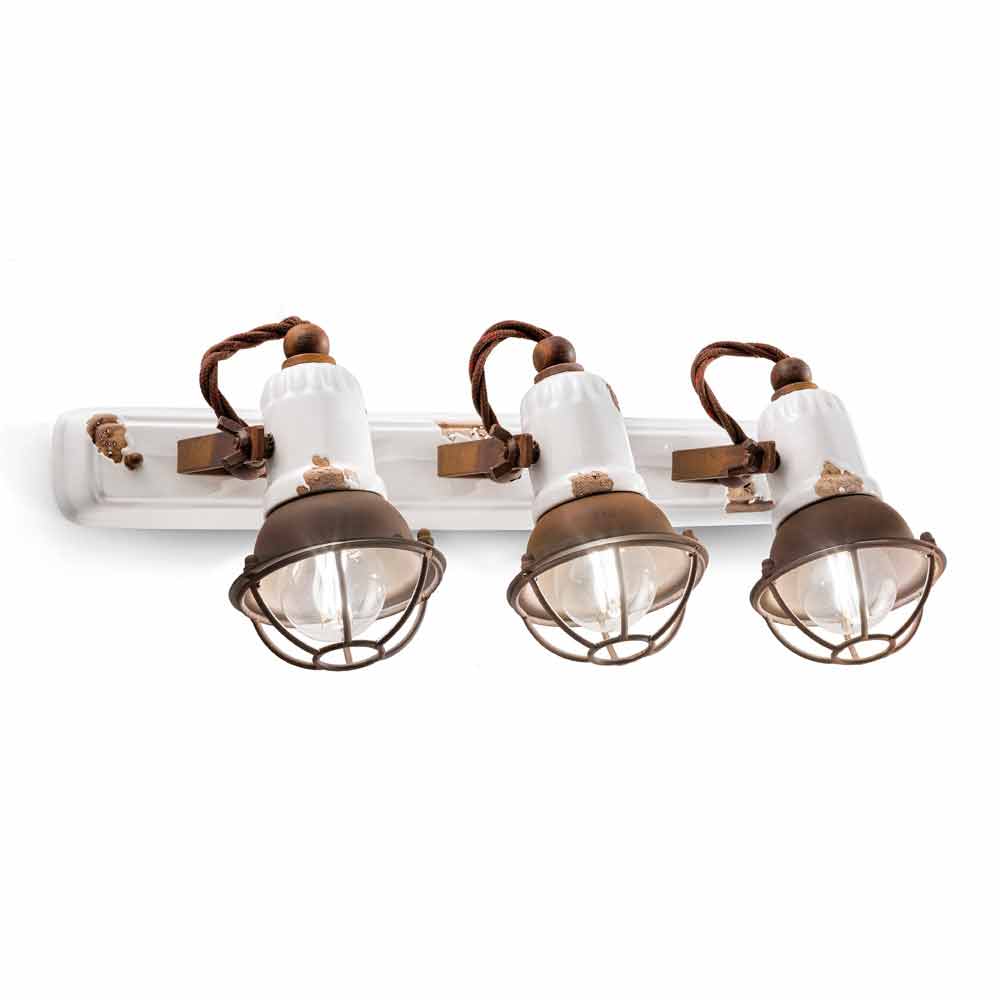 Directional light, ceramic with vintage finishes in perfect harmony with oxidized metal: a unique applique in its style, with an antique flavour, perfect for the most refined environments.