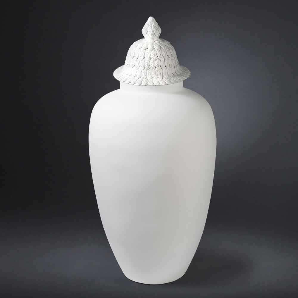 Tall decorative vase in white ceramic handmade in Italy, high quality.