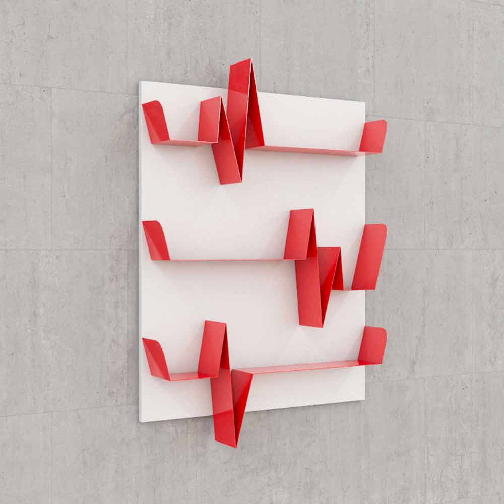 The heartbeats become the shelves of this original wall mounted bookcase, made of painted iron.