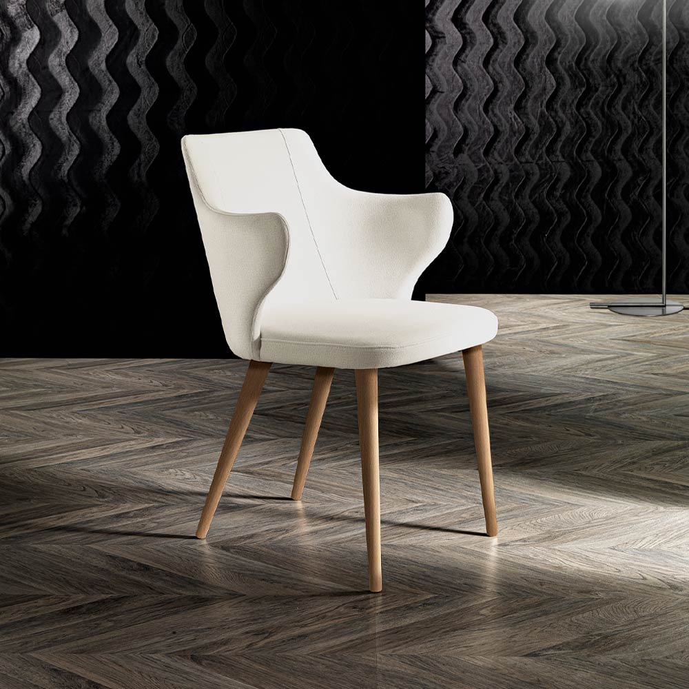 Transform your dining room into a more comfortable and elegant space with the modern armchair with a seat covered in easy-to-clean crystal fabric and available in different colour variants: