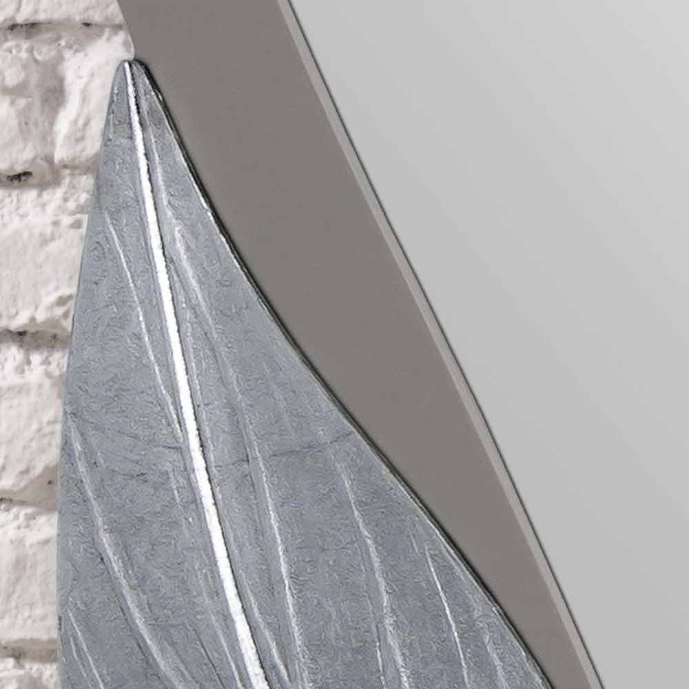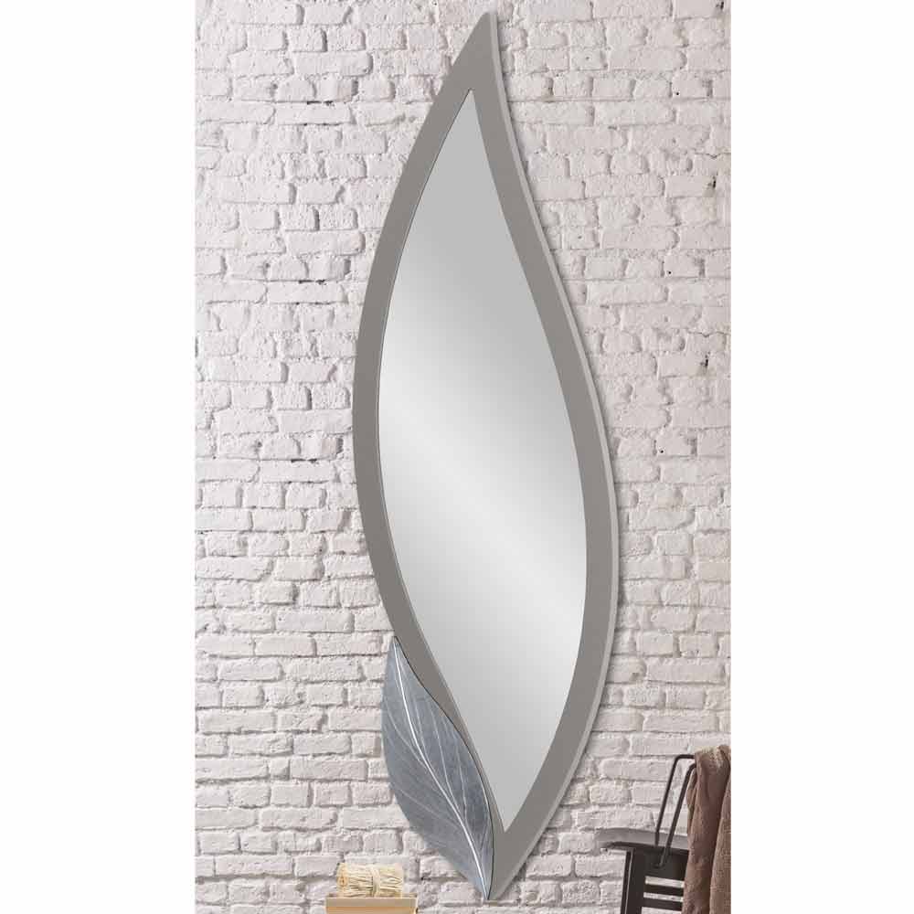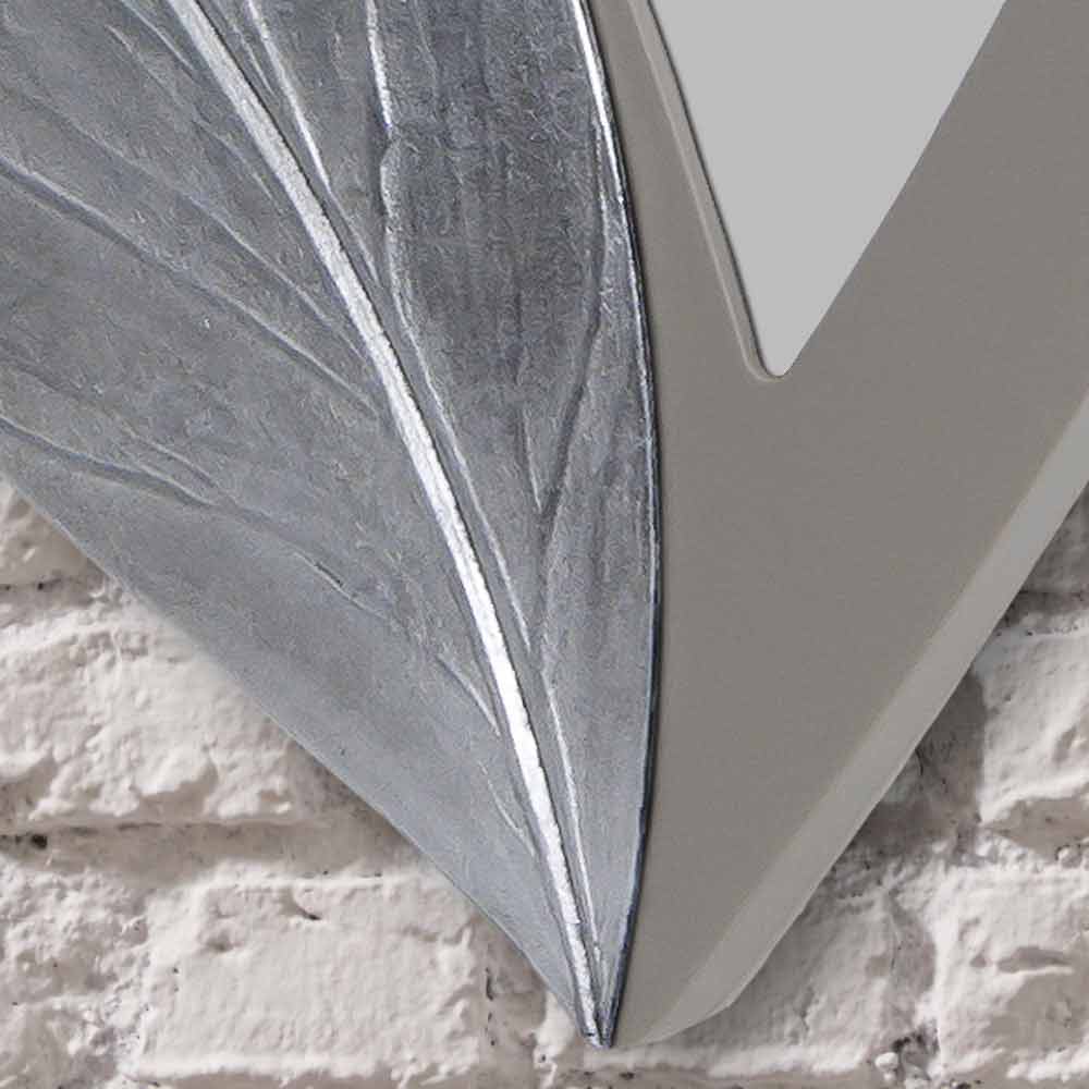 The frame is lacquered in a dove-grey colour. The decorative details in silver leaf are hand painted. It can be positioned horizontally and vertically. Glossy finish.