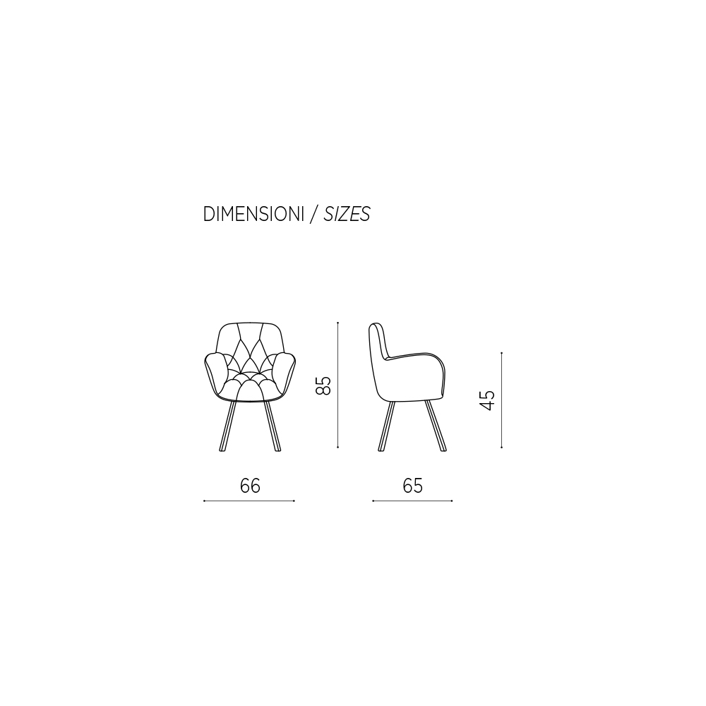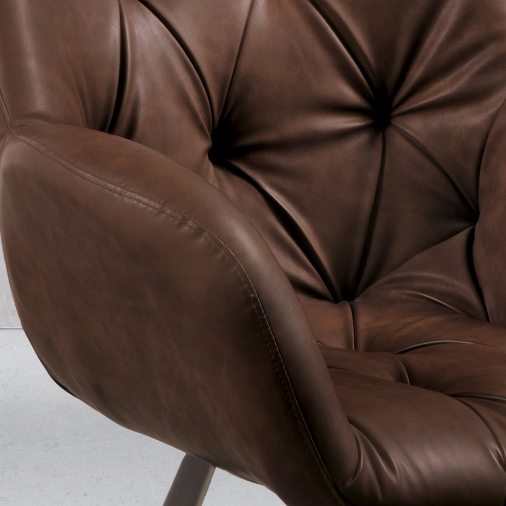 Living room chair with seat covered in eco-leather and painted metal structure with an exclusive and elegant design . The result is a one-of-a-kind furnishing solution that blends functionality and versatility to furnish your home spaces with personality. Its structure is punctuated by slender and light lines that make it perfect for completing the furnishing of environments in which it gives an exclusive and refined touch while ensuring a welcoming and comfortable seat .