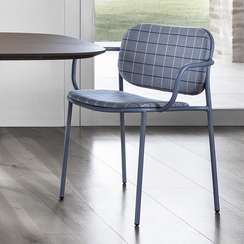 Dining room chair in fabric and metal with armrests Made in Italy, 2 pieces.