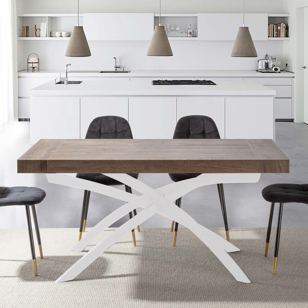 painted metal base. The top has the possibility of being extended up to a maximum of 280 cm thanks to the two extensions in the same colour positioned inside the table. Thanks to this feature, the table proves to be extremely