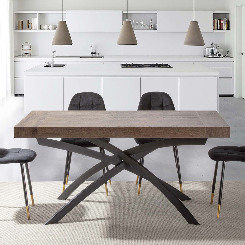 functional allowing, if necessary, to accommodate a greater number of guests and allowing an easy and quick closure of the top to optimise the spaces in the best way. The particular shape of the structure also gives the table a unique touch, creating a wonderful harmony between the shapes and an innovative sense of movement.