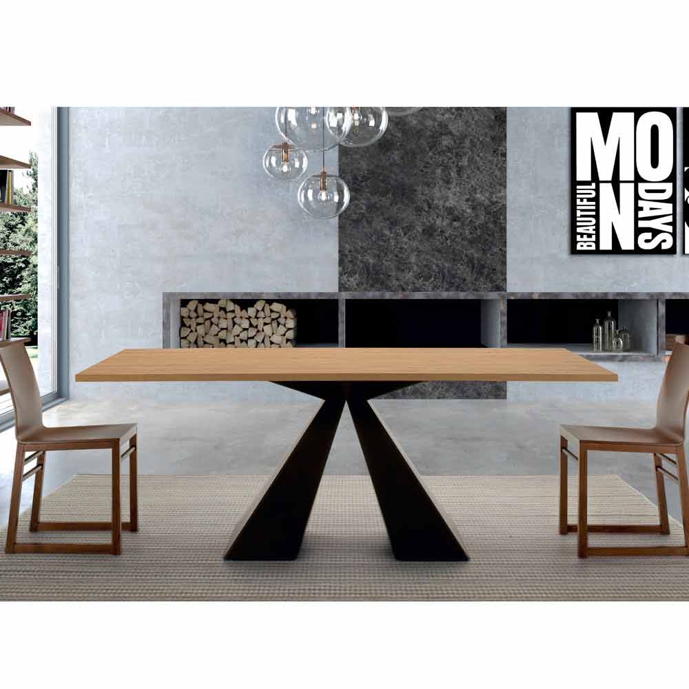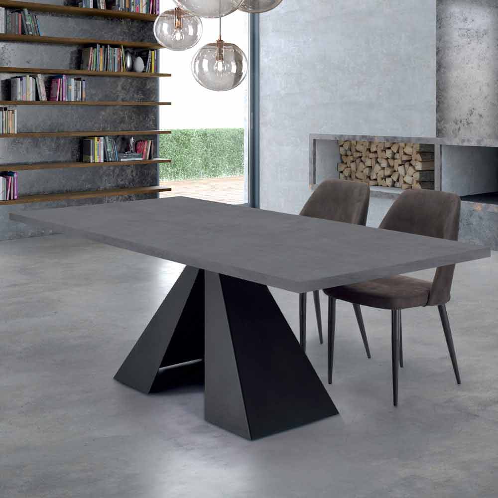 Dining table in high-quality Made in Italy HPL laminate and lacquered steel.