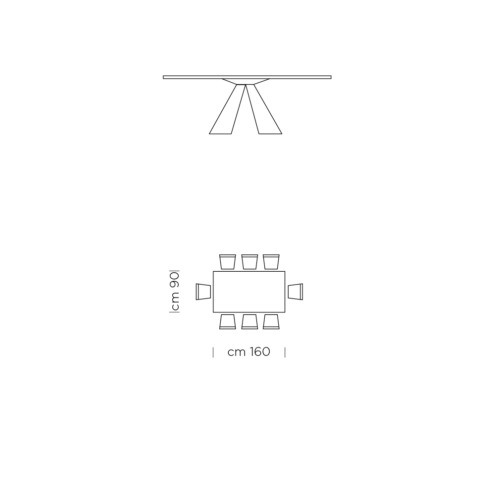 - L 160 x D 90 x H 75.3 cm (8 seats);