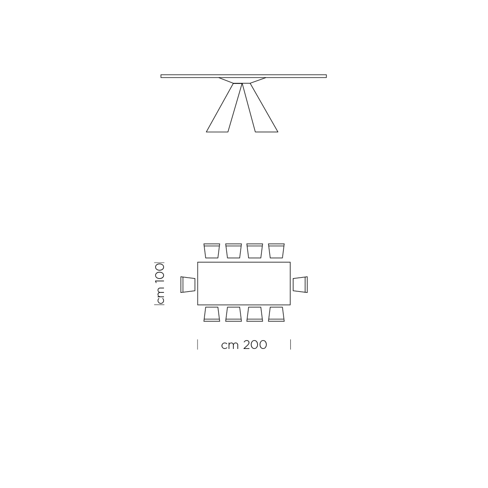 - L 200 x D 100 x H 75.3 cm (10 seats);