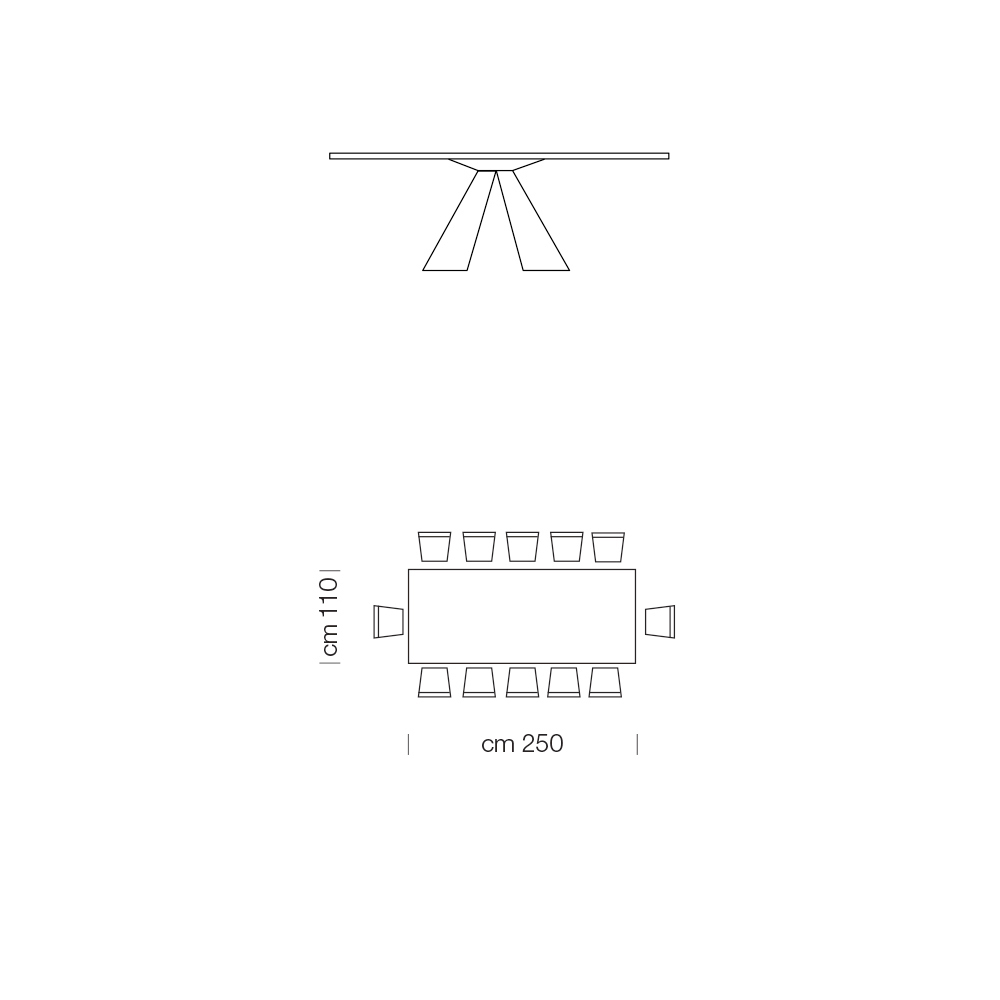 - L 250 x D 110 x H 75.3 cm (12 seats).