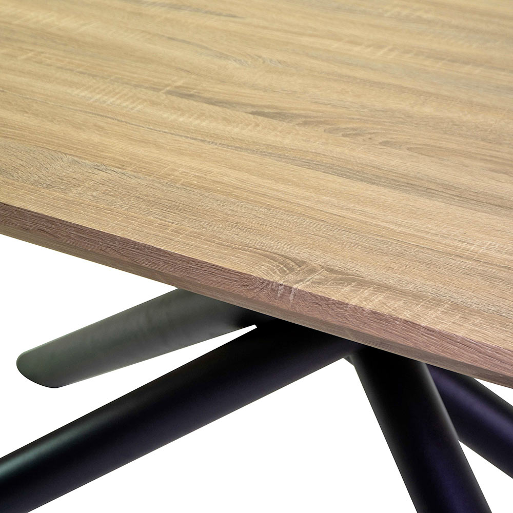 The MDF top with a natural wood effect finish adds warmth and character to the furniture, creating a harmonious visual contrast with the dark metal. The smooth and wide surface offers the ideal space to welcome family and guests , adapting perfectly to any environment, from the dining room to the modern living room , up to contract contexts such as restaurants or offices.