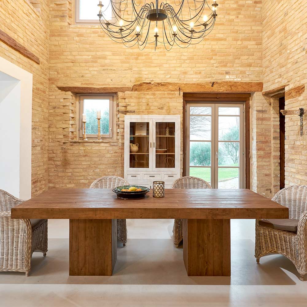 This furniture outfit ĆØ literally unique precisely because it encapsulates the peculiar history of the lived-in material. The workmanship is largely done according to handcrafted procedures. Every nick and imperfection, every scar on the wood, testifies to the originality of a past that is given new life. The recycled tropical wood legally from old artifacts, boats and abandoned buildings is expertly crafted in order to regain dignity and luster. This product combines theāessence of rustic taste with the forms of contemporary design and with some details of the industrial style.
