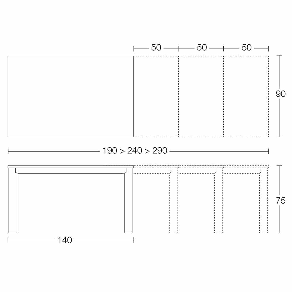 - L 140 (290) x D 90 x H 75 cm