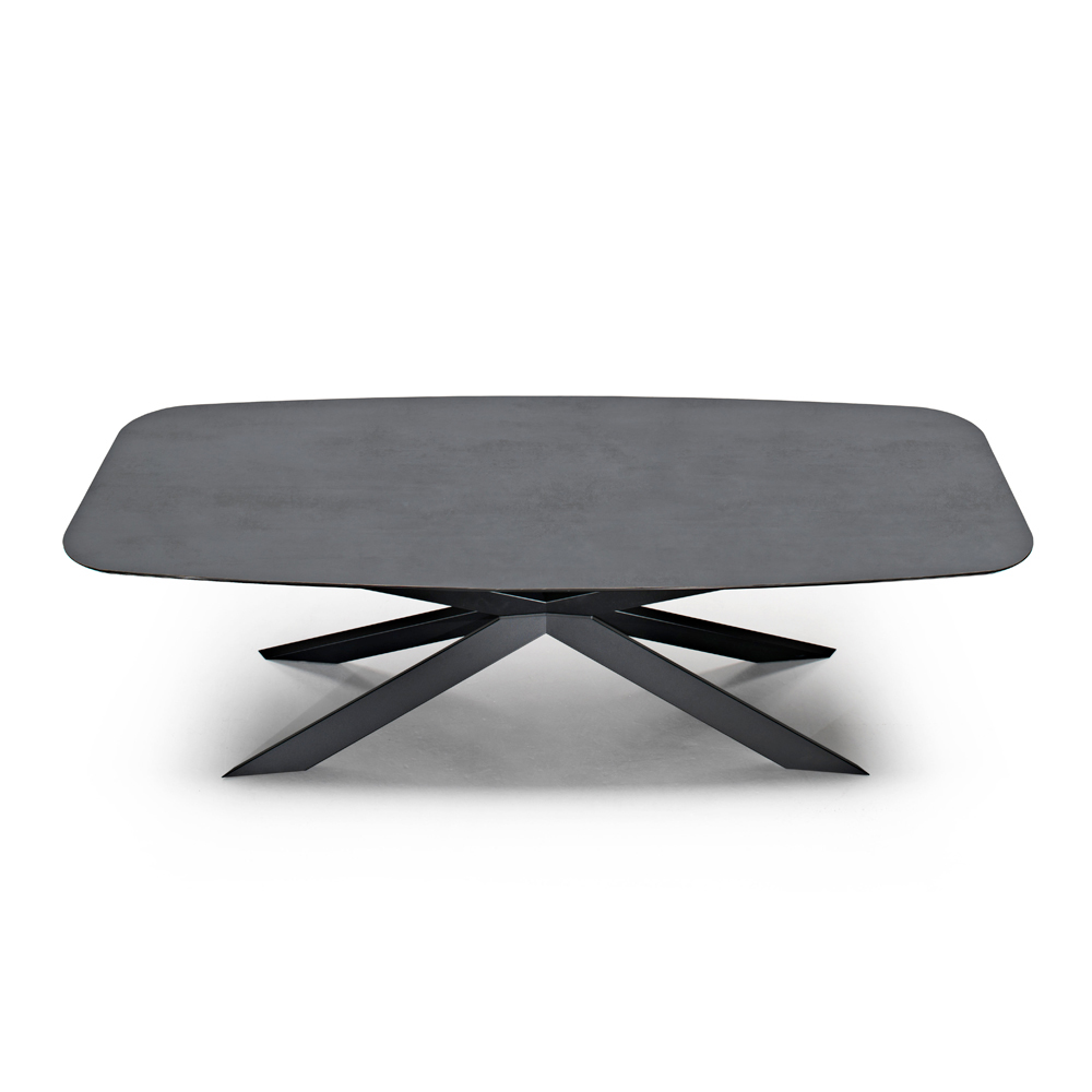 Dining table with barrel-shaped top in stone-effect HPL laminate Made in Italy.