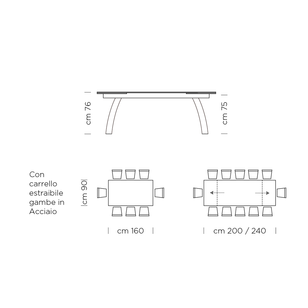 - L 160/240 x D 90 x H 78 cm (8/12 seats);