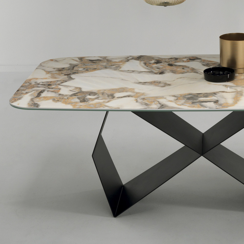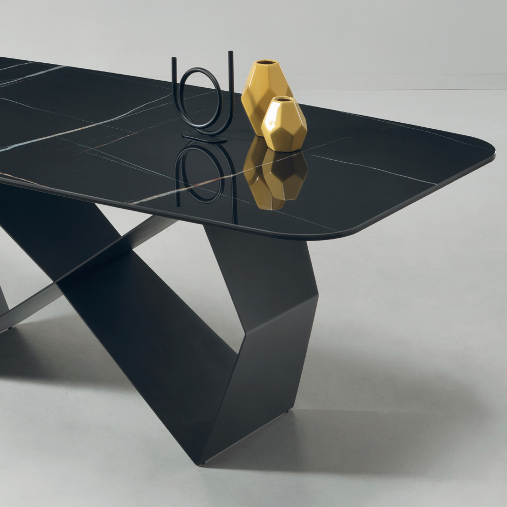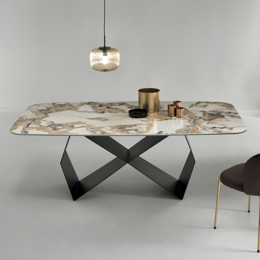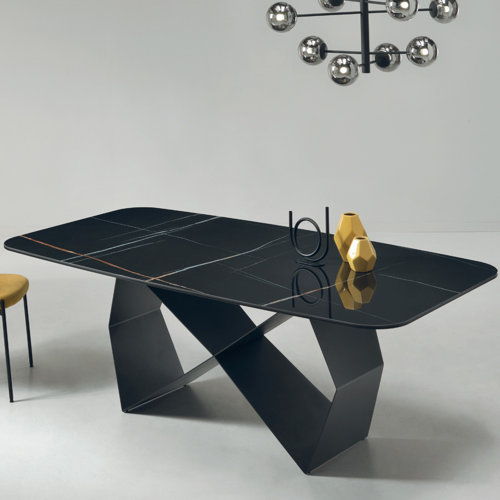 Dining table in marble effect ceramic and black metal Made in Italy.