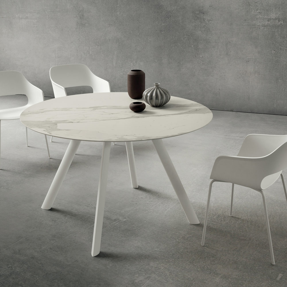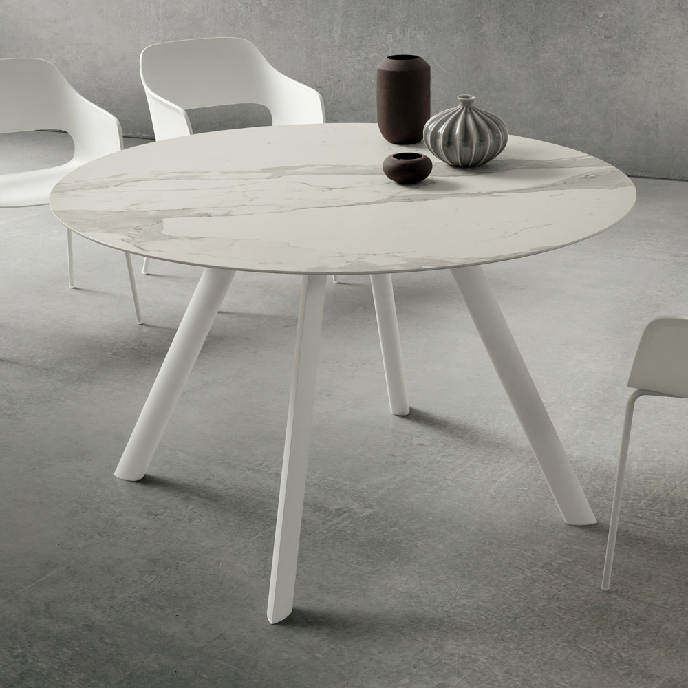 Luxury dining table with round laminam ceramic top Made in Italy.
