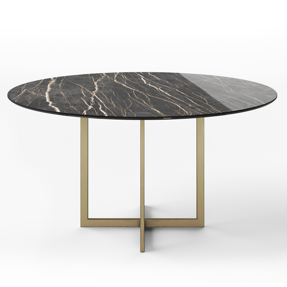 Round dining table in porcelain stoneware and metal Made in Italy.