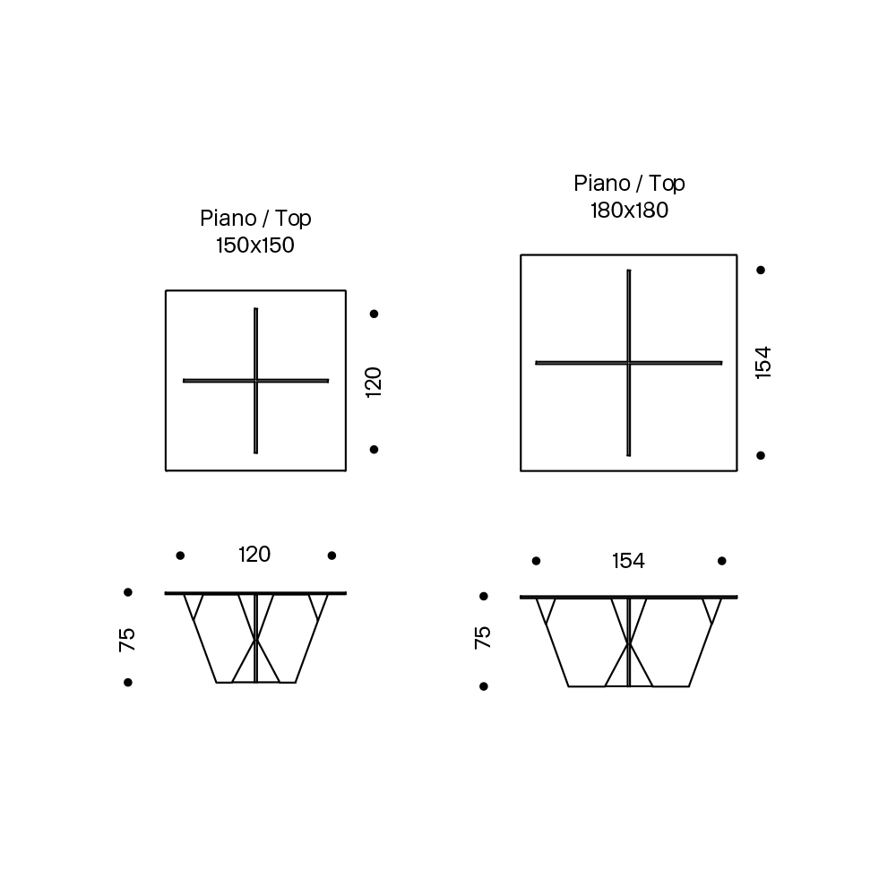 Modern kitchen table entirely made in Italy with square top and glass base enriched with metal details. A piece of furniture characterized by an elegant and sculptural structure that comes from the combination of materials of different nature together with the passion for glass processing, thus managing to define a representation of strength and character through different shapes and thicknesses. The strong point of its aesthetics is the architectural base characterized by a pyramidal joint made of metal which constitutes the essential part of the product. The metal elements complete the design of the table giving shape to the glass of the base and enriching it with personality and originality.