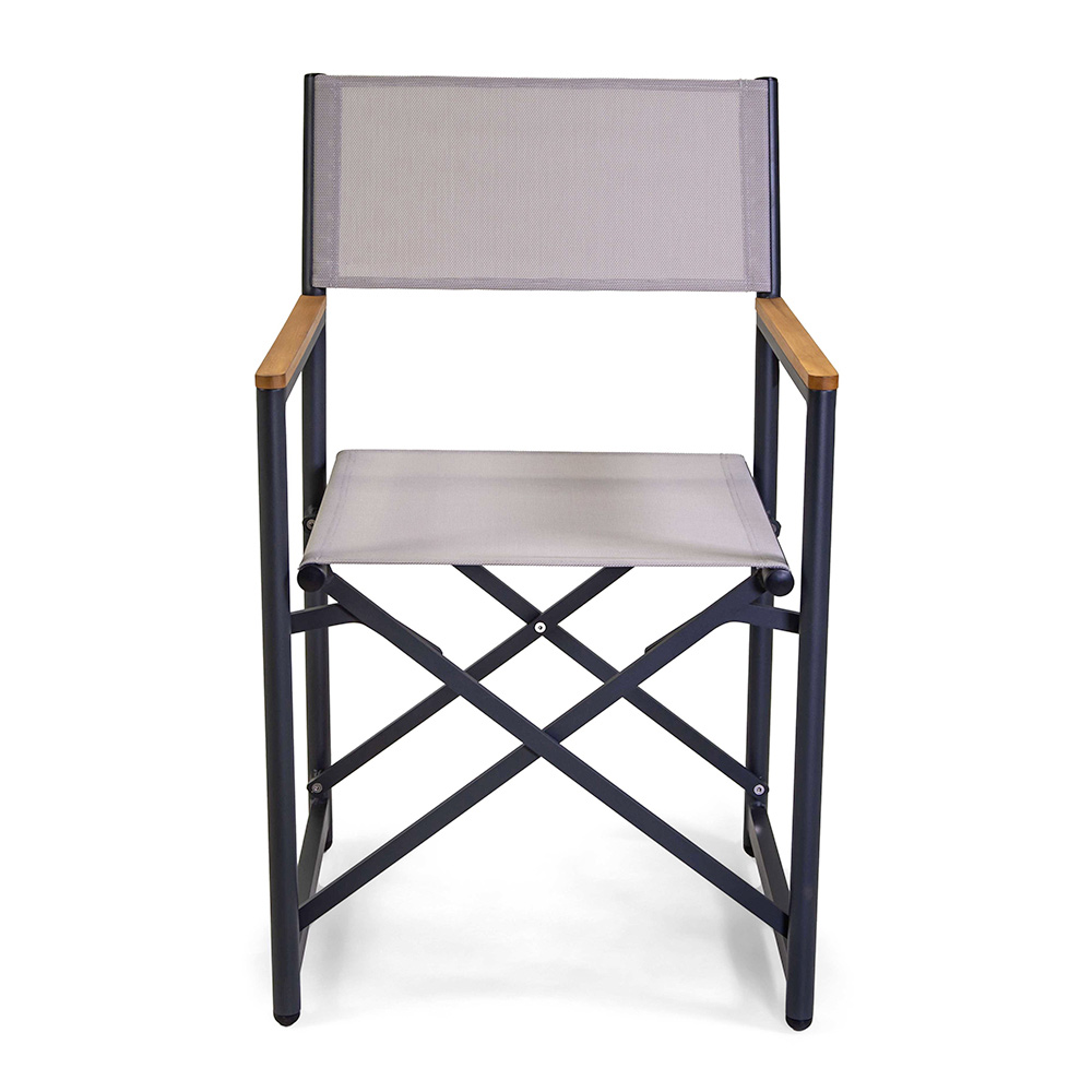 This chair combines functionality and style in a unique design, ideal to complement any modern indoor or outdoor environment. The sturdy powder-coated aluminium frame ensures durability and stability, while the teak wood finishes on the armrests add a touch of natural elegance. The textilene seat and backrest provide comfort and support, making the chair perfect for long hours of relaxation or conversation. Thanks to its compact design, this chair is the ideal option for those looking for versatility and style without sacrificing space. Elegant, practical and durable, it is the perfect choice for any occasion.