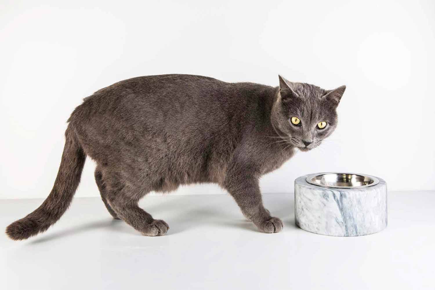 Made in Italy design bowl for dogs and cats in white Carrara marble.