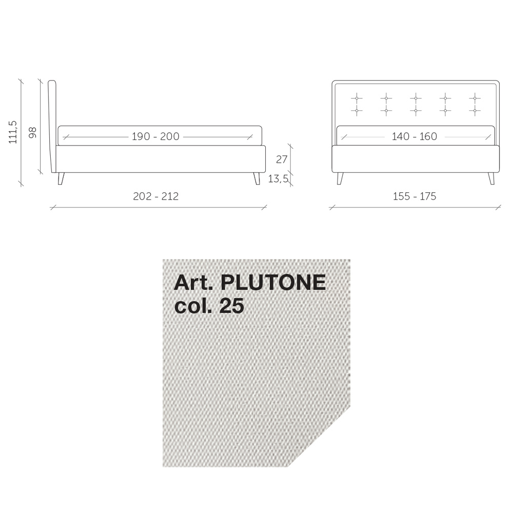 Double bed covered in water-repellent and stain-resistant fabric with dynamic base , storage box and anthracite-finish metal feet (height 13.5 cm). This bed is the epitome of comfort and contemporary design. It is a perfect combination of refinement and functionality , designed to offer nights of pure relaxation and unparalleled style.