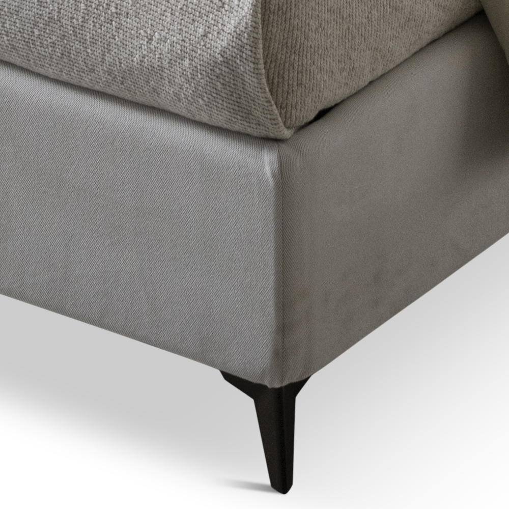- the bottom panels of the storage box, certified in class E1 with very low formaldehyde content, are made of 10.5 mm thick laminate, in grey to match the internal fabric of the bed frame, to allow for easy cleaning and hygiene using a common damp cloth for dust.