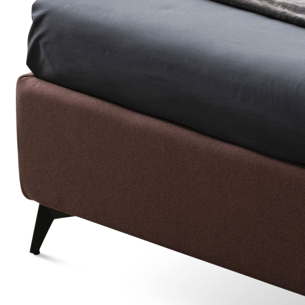 storage box, anthracite finish metal feet (height 13.5 cm) and unique and innovative headboard made with curved sides and a double quilted band that runs horizontally in water-repellent and fire-retardant fabric.