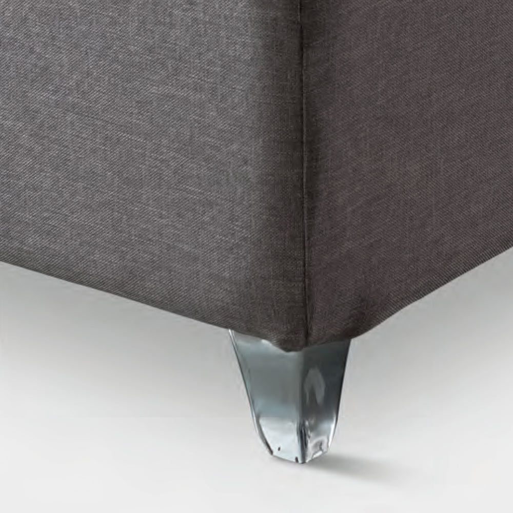 storage box, metal feet with polished steel finish (height 8 cm) and headboard in