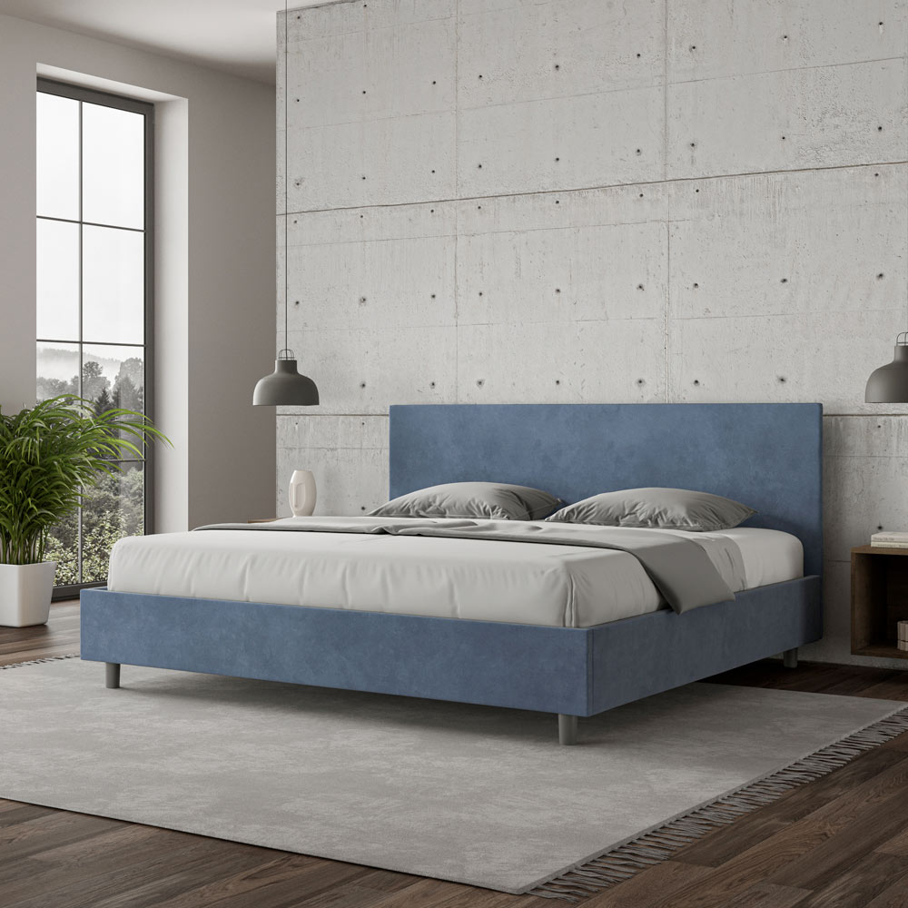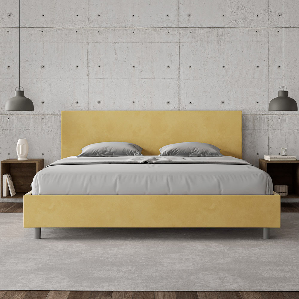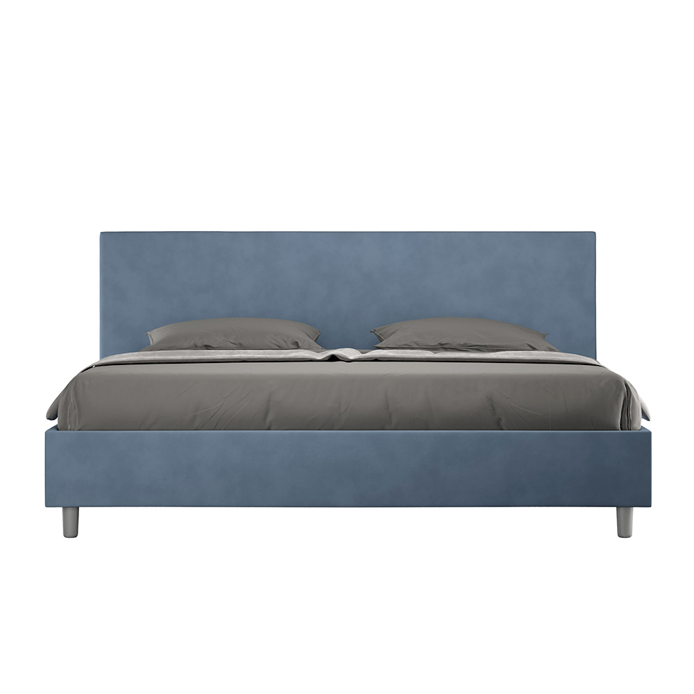 King size bed 180x200 cm padded made of melamine panels and covered in microfibre , entirely Made in Italy. This king-size bed features a padded bed frame and is an icon of understated yet elegant style. Featuring a microfiber headboard , this bed blends seamlessly into any space, adding a distinctive touch of class and luxury, quintessentially Italian. Maintenance is easy: simply wipe it with a microfiber cloth to preserve its beauty over time.