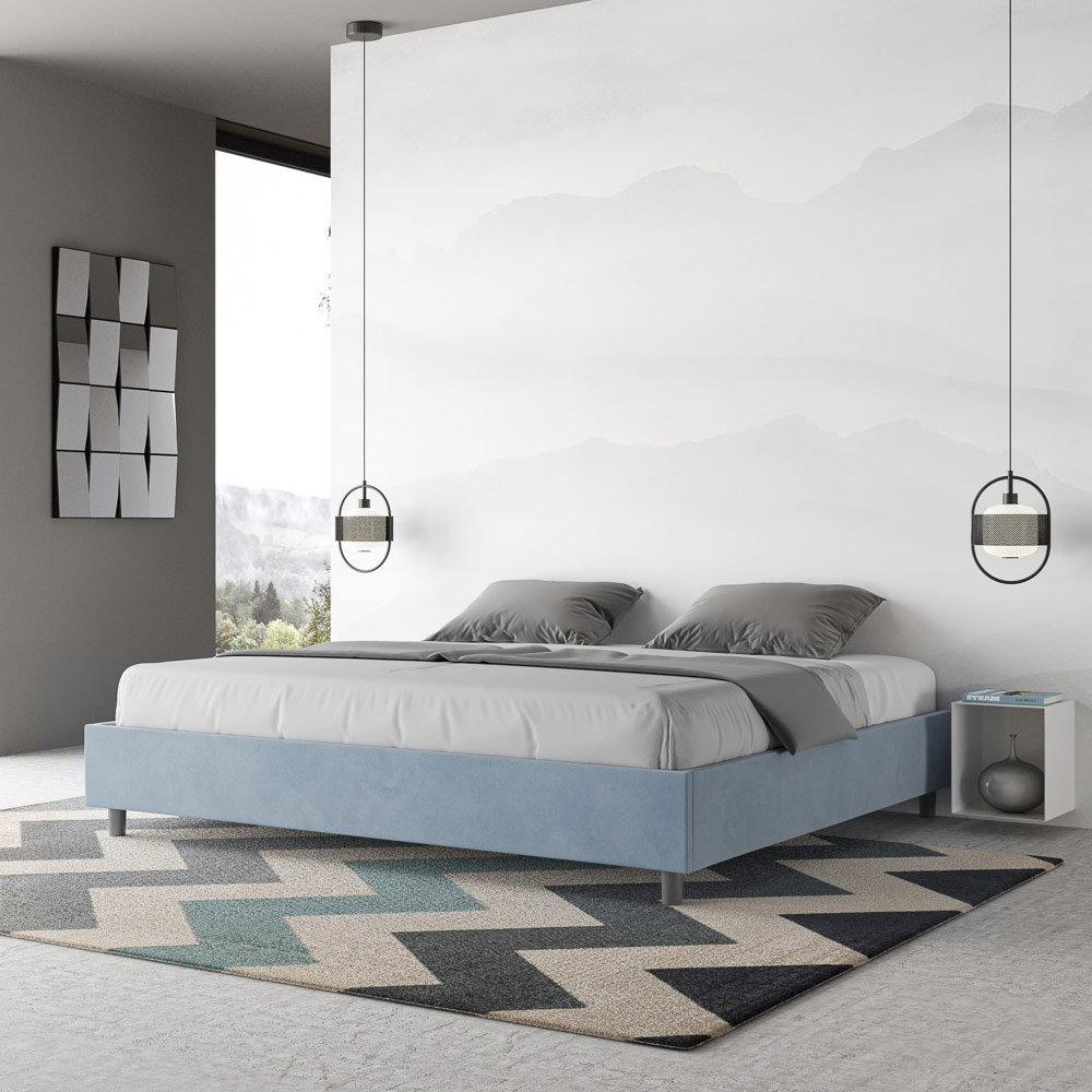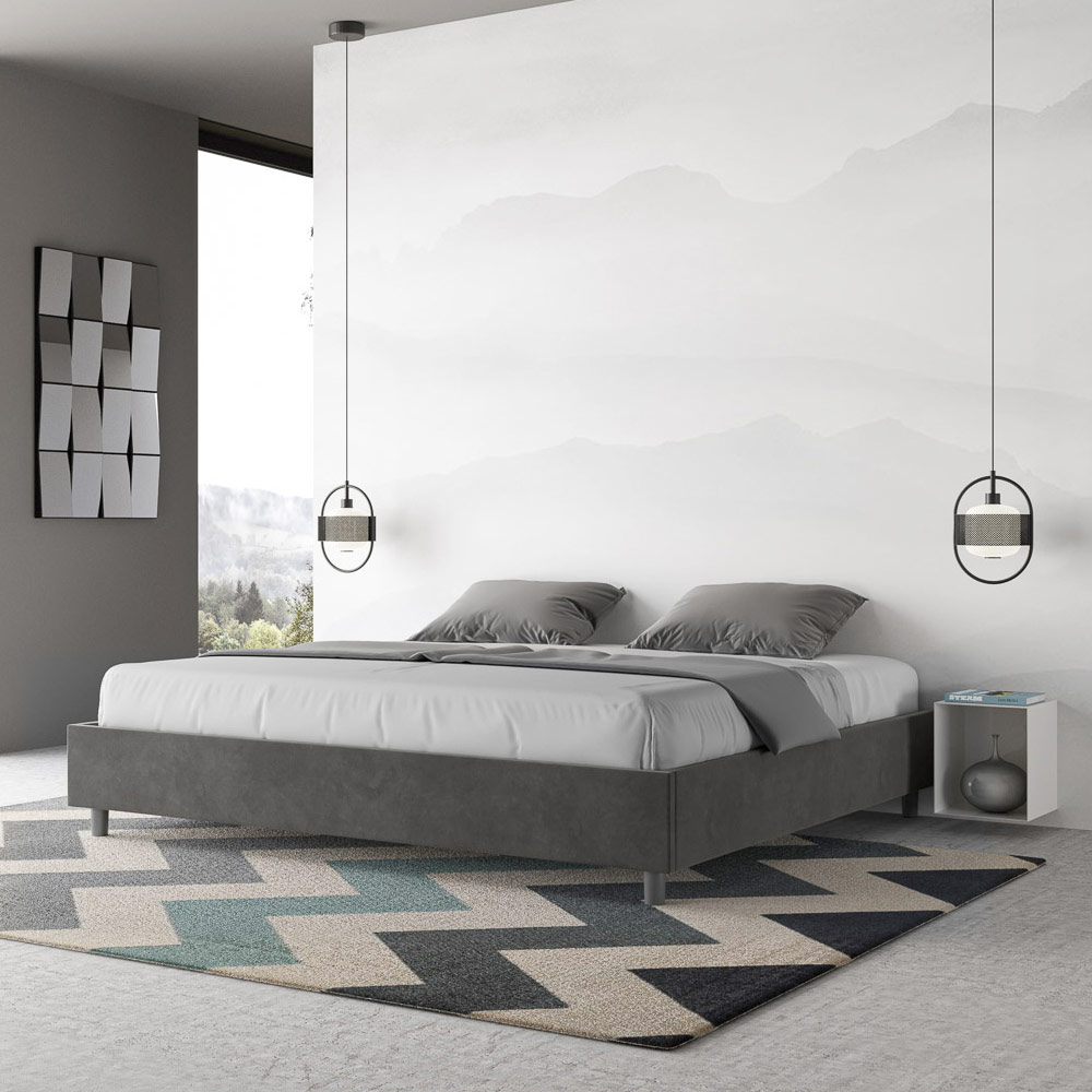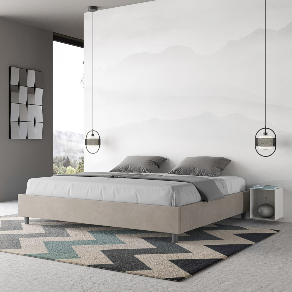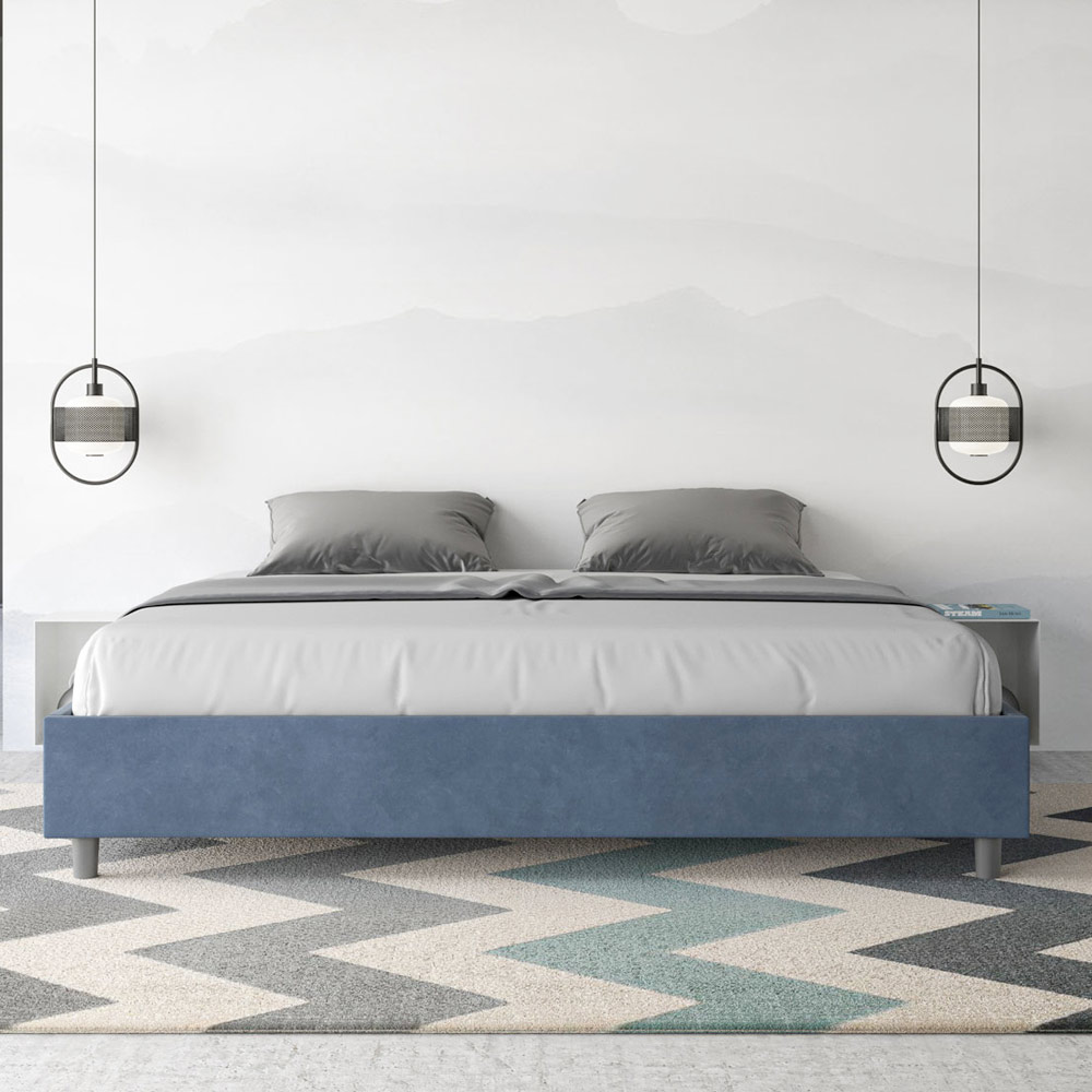King size bed 190x200 cm padded made of melamine panels and covered in microfibre , entirely Made in Italy.