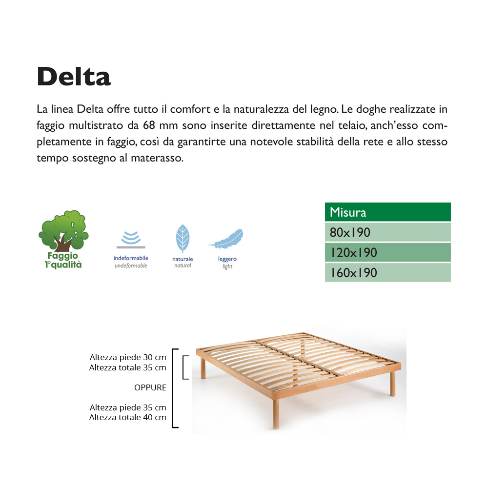 68 mm multilayer beech are inserted directly into the frame, which is also completely made of beech, so as to guarantee considerable stability of the base and at the same time support the mattress.