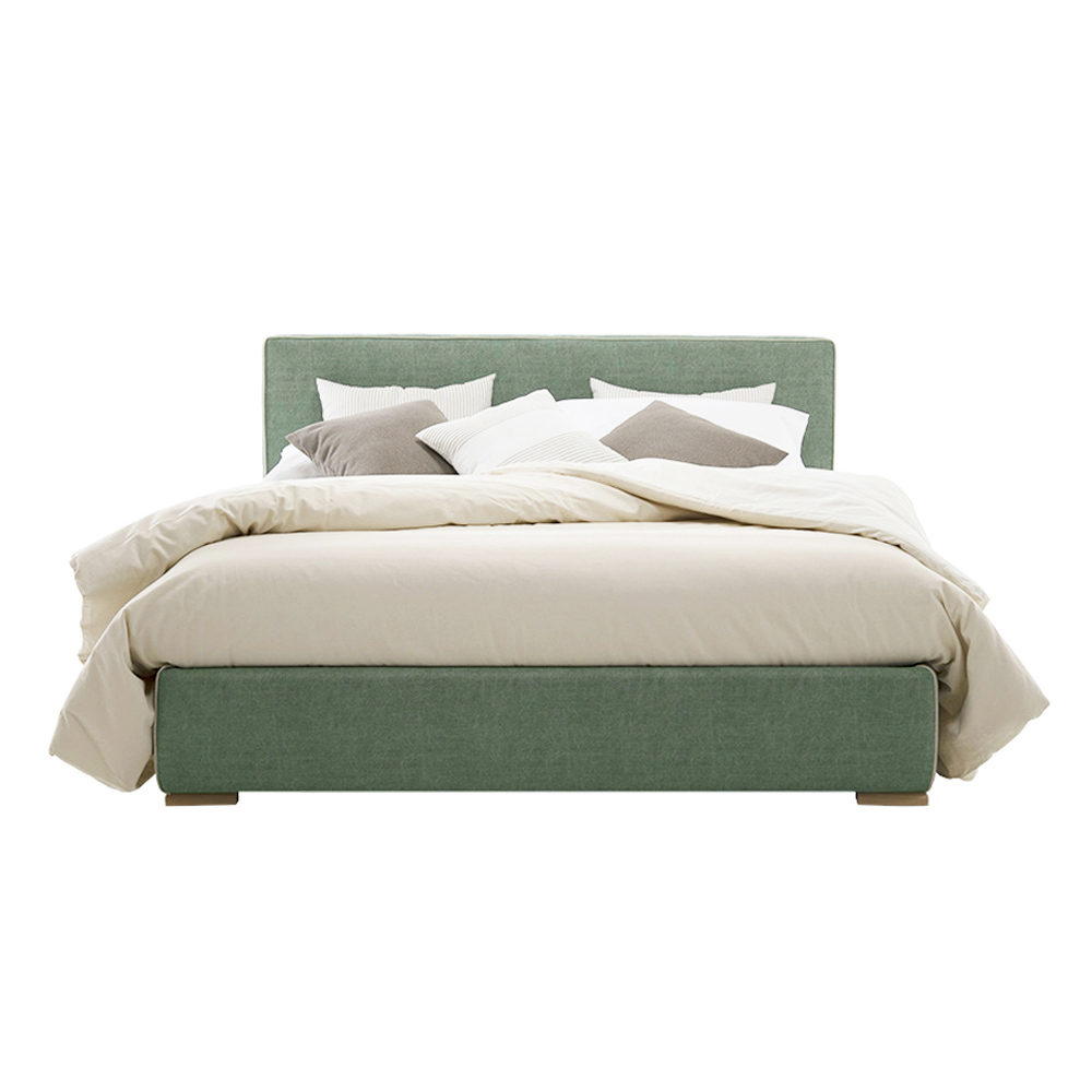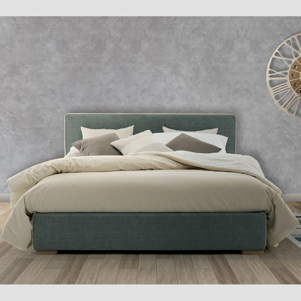 Luxury double bed with storage box, handcrafted in Italy in eco-leather or fabric.