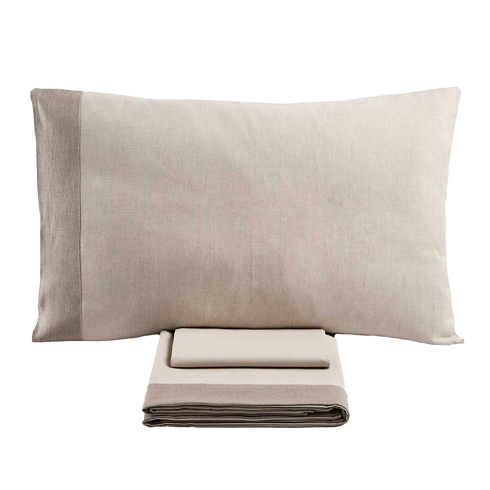 Discover the double bed set made with a fine blend of 90% cotton and 10% linen , an ideal combination for those seeking maximum comfort combined with impeccable design. This unique composition combines the softness and breathability of cotton with the resistance and natural freshness of linen, offering a superior sleep experience in every season.