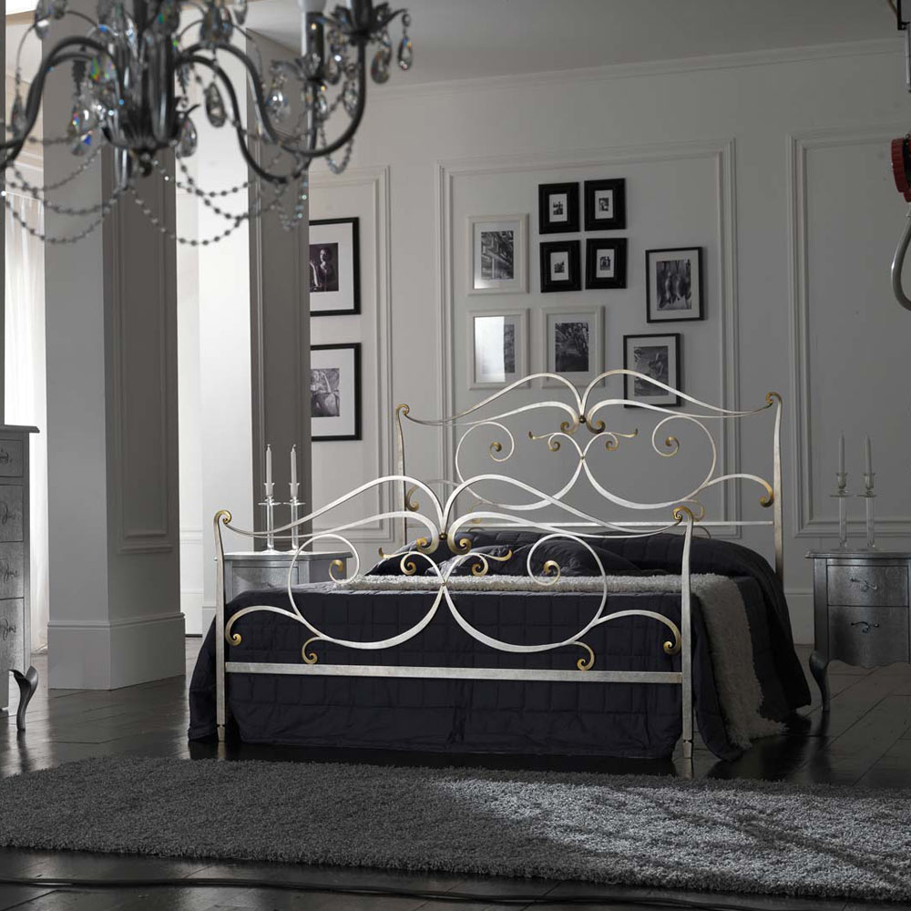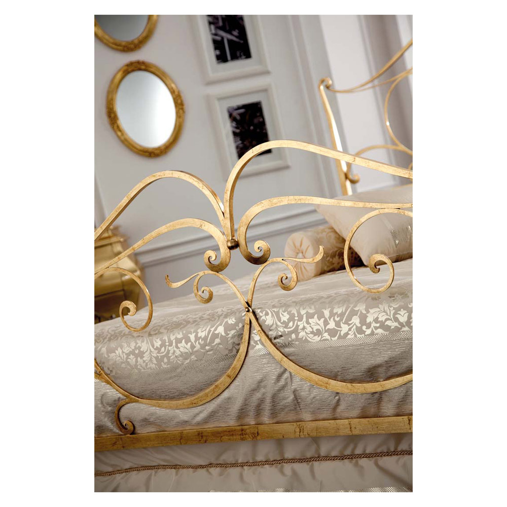 Double bed made with coordinated headboard and footboard in solid iron and finished with powder coating or artisanal leaf painting.
