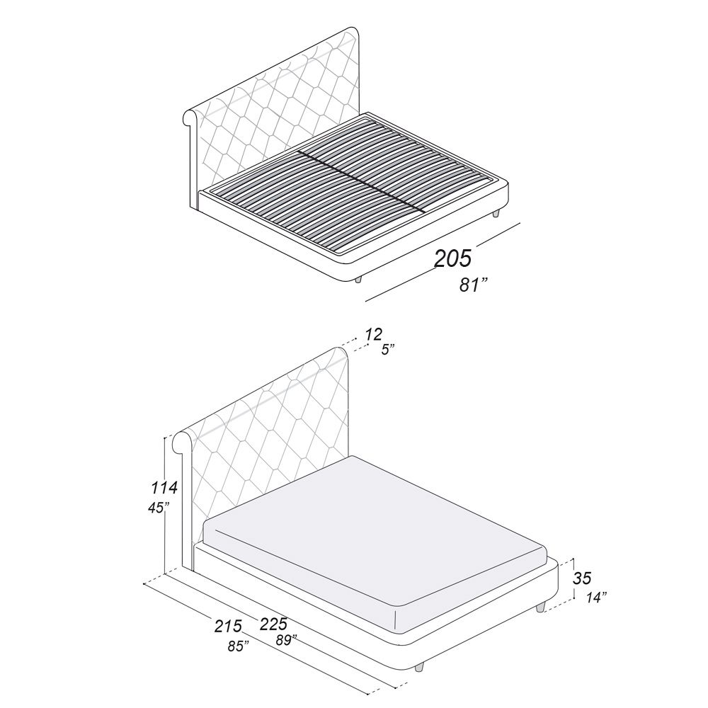 - length: 205 cm x depth: 225 cm x height: 114 cm - suitable for a 180x200 cm mattress