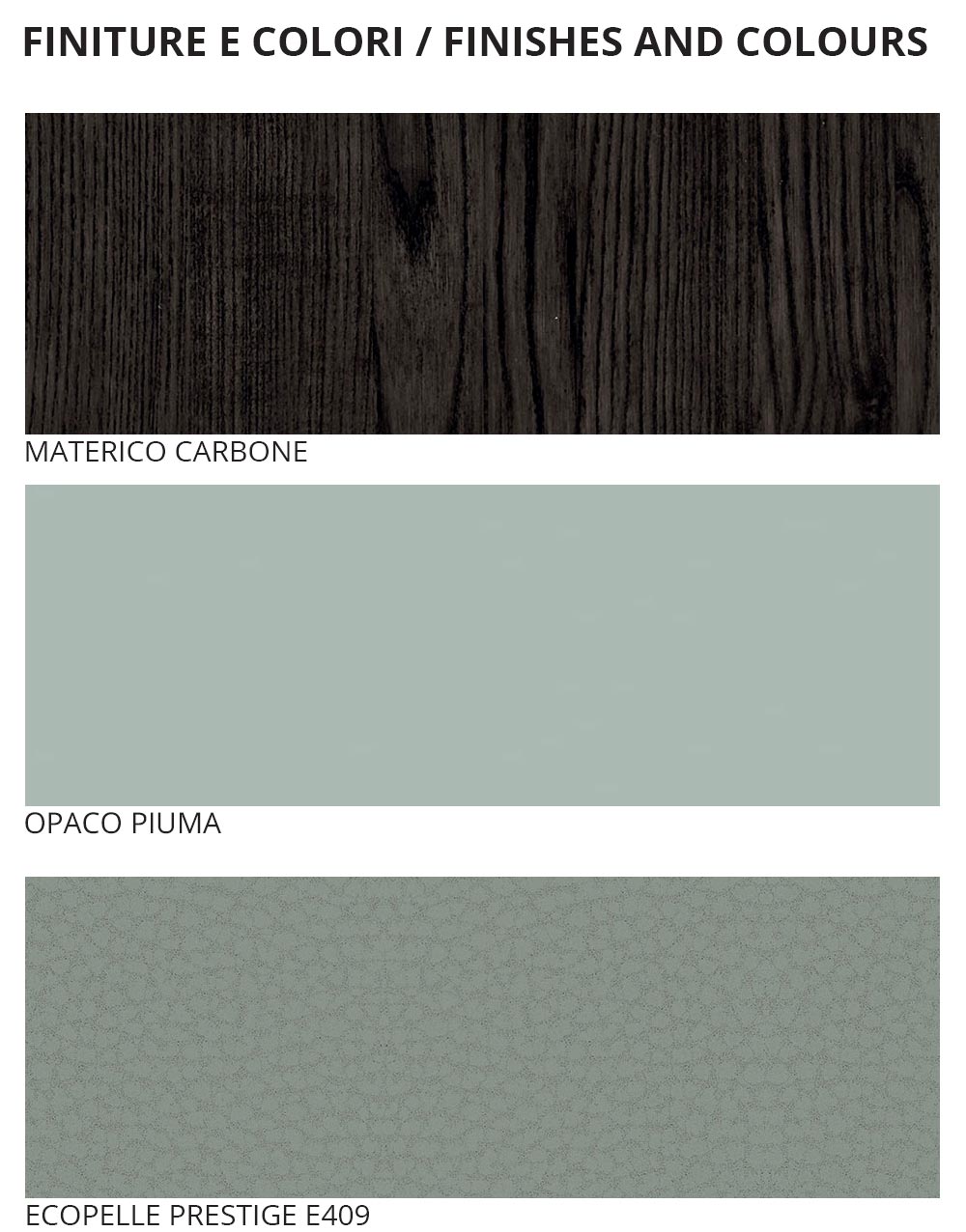charcoal-stained ash veneer and a coffee table. in wood veneer with concrete finish. The bed, the protagonist of the room, is characterized by a