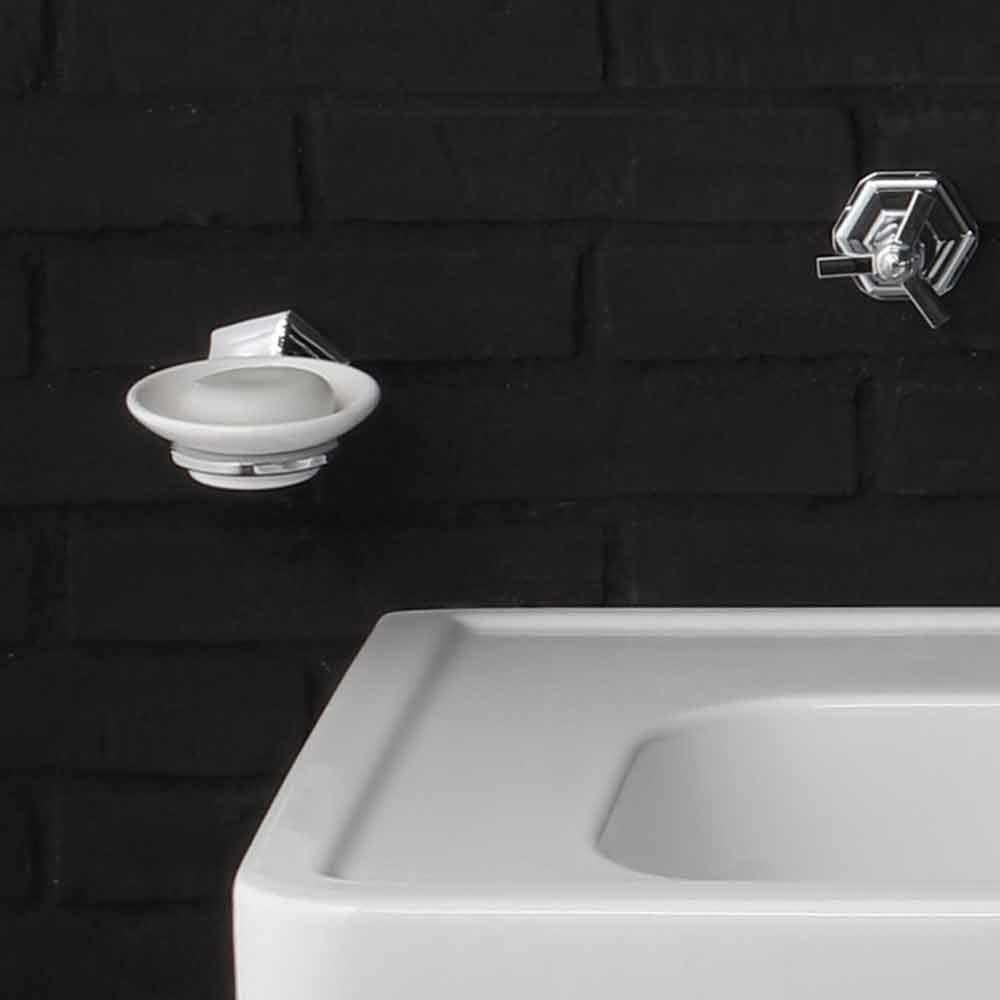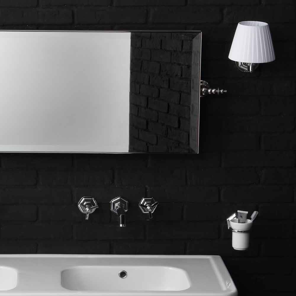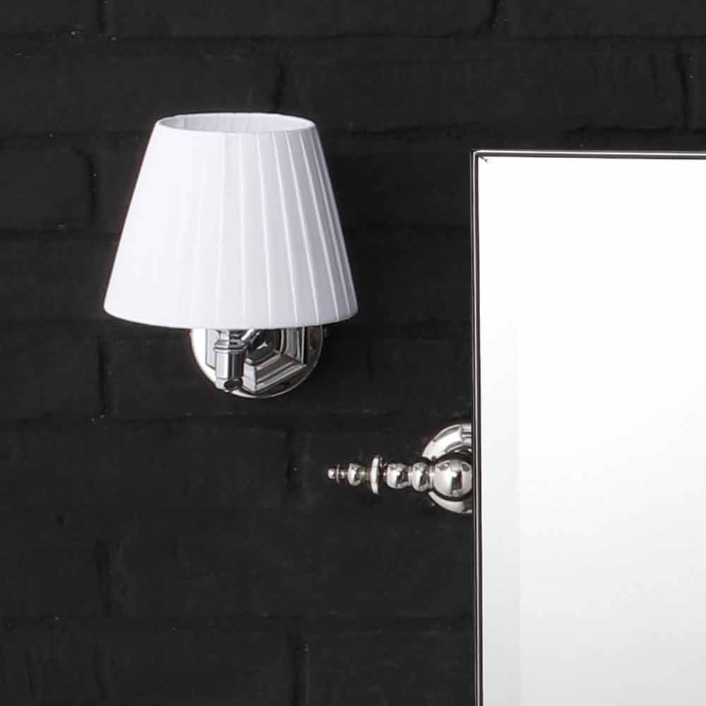 Serenity is completed and enriched by the presence of a beautiful and elegant ceramic wall soap holder with chromed details and a toothbrush holder in the same design, all completed by two beautiful lux applique in chromed brass and cotton lampshade.