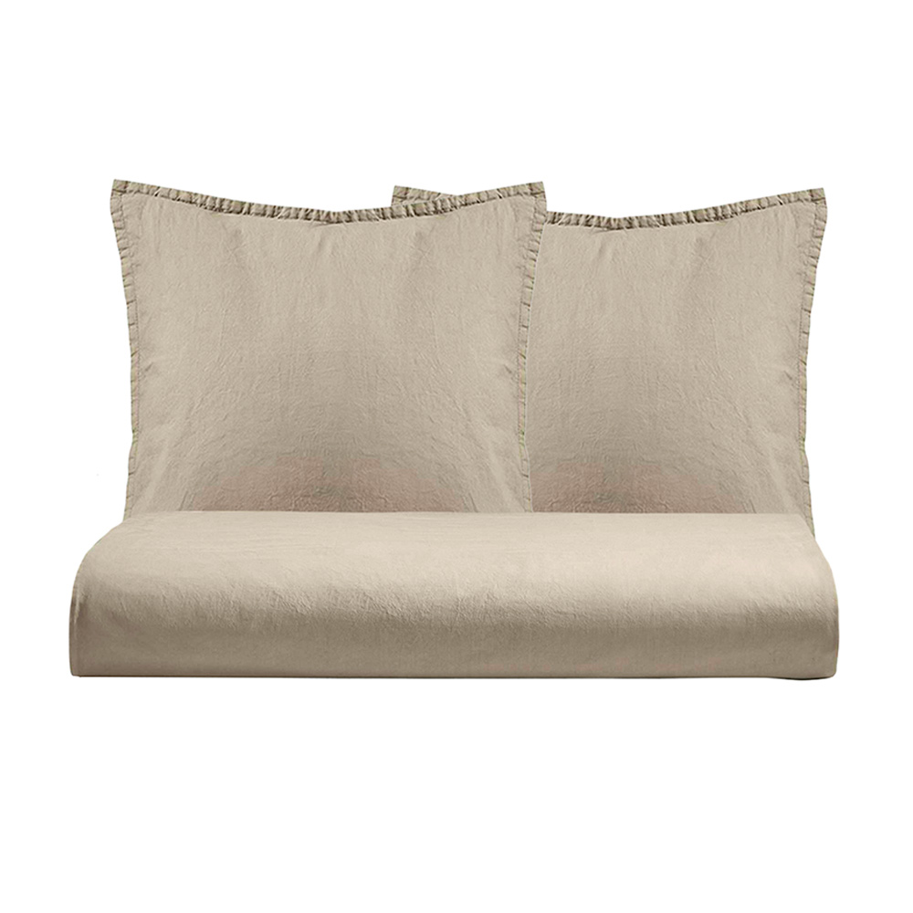 The garment-dyed pure cotton duvet cover set represents excellence in the field of bedding, offering not only superior comfort but also a refined aesthetic. This set, made with artisanal dyeing techniques, guarantees a rich and long-lasting colour that adds a touch of elegance to any bedroom. Every detail is taken care of to ensure an unparalleled softness , ideal for cuddling during cool nights.