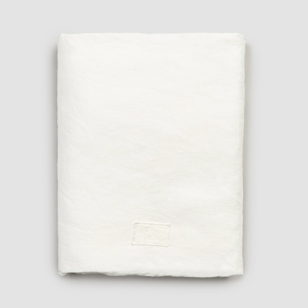 Sheet for double bed in pure colored linen with corners, luxury handcrafted design made in Italy.