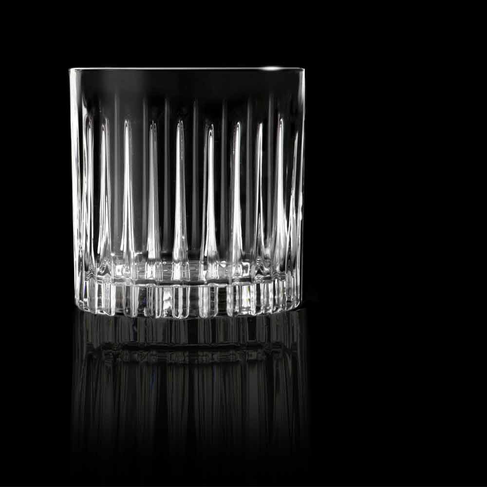 12 double old fashioned luxury glasses, versatile design in decorated eco-crystal 100% made in Italy.
