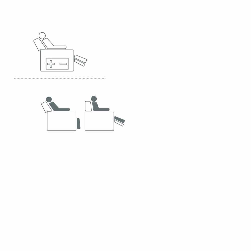 Mechanisms with one or two motors , alternately autonomous or independent foot and backrest movements, lift function , lifting device that allows you to easily assume the upright position, vibromassage for a pleasant effect distributed on the backrest, seat and footboard, automatic or motorized movement, are these are the possibilities and combinations developed: a harmonious set of solutions to satisfy every type of need.