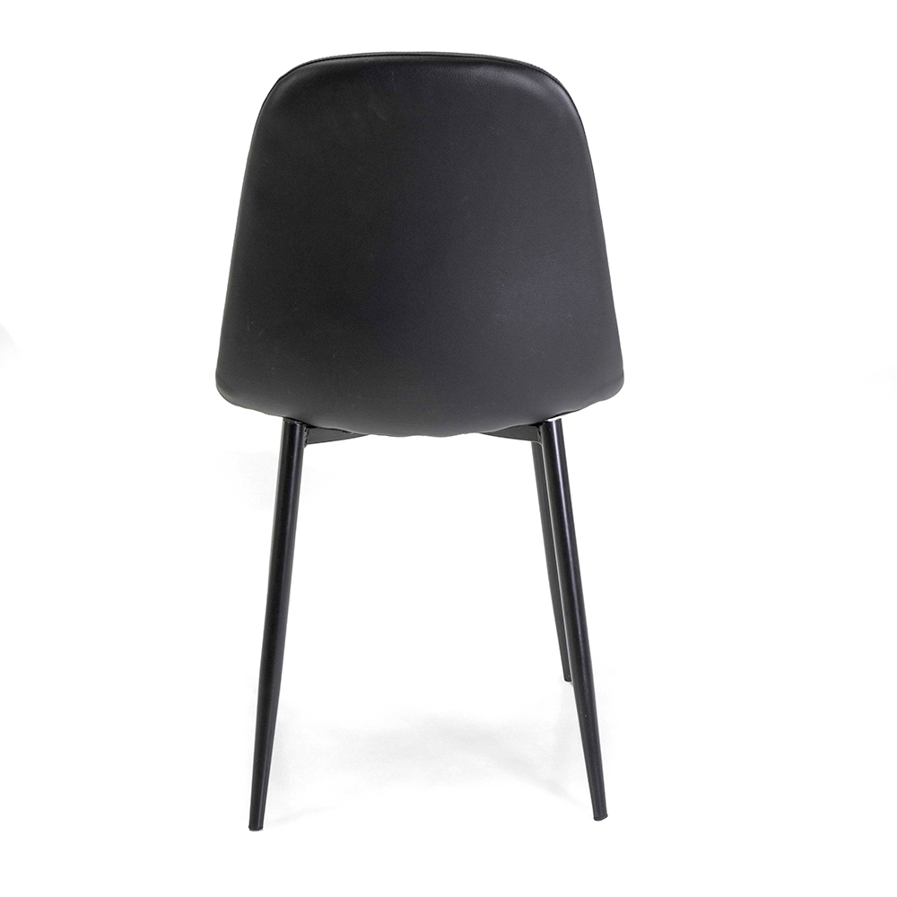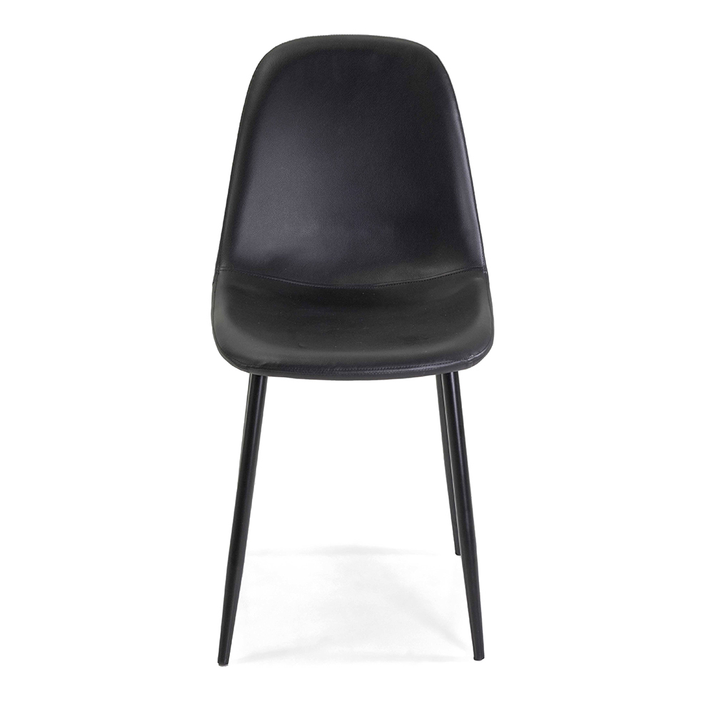 This elegant faux leather chair is the epitome of modern sophistication, perfect for adding a touch of class to any space. Upholstered in a luxurious faux leather , it offers comfortable and stylish seating that is durable and easy to clean. The slim, tapered black metal legs ensure solid stability and add an eye-catching sculptural look.
