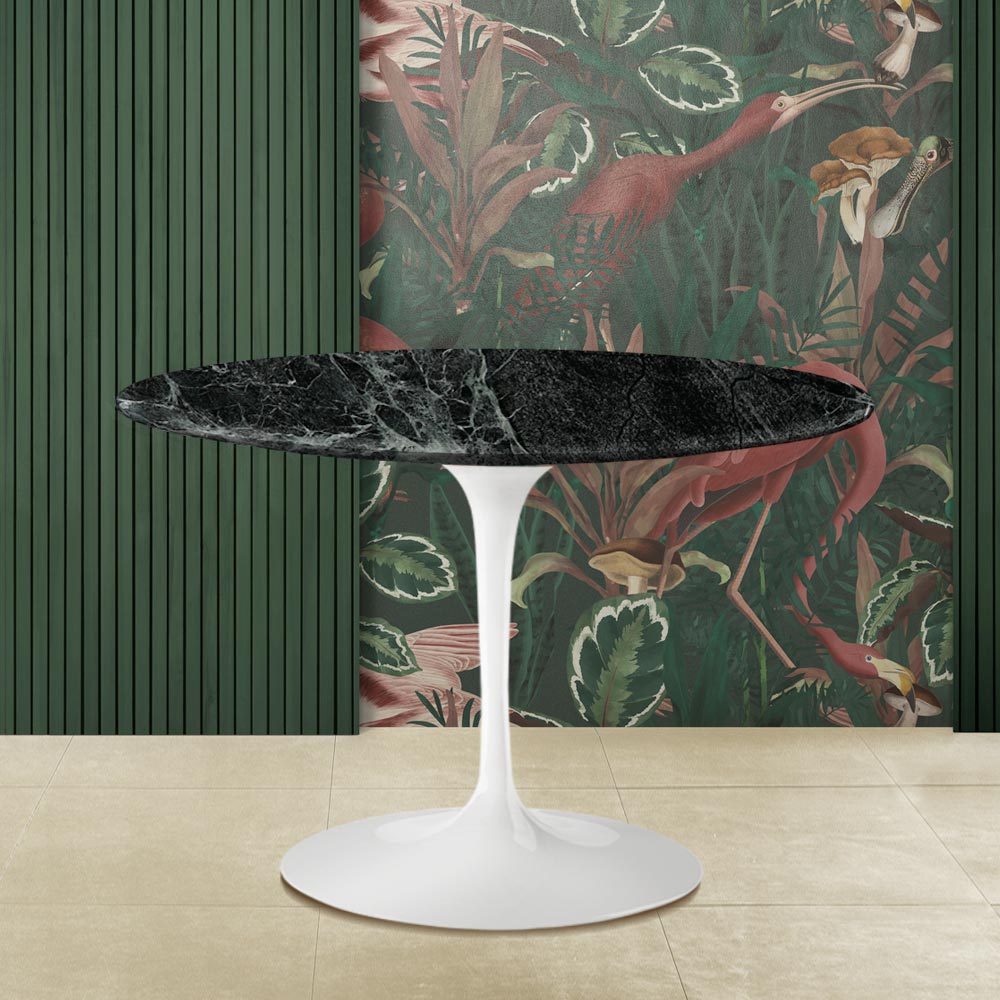 Round dining table with green alps marble top and polished aluminium base Made in Italy