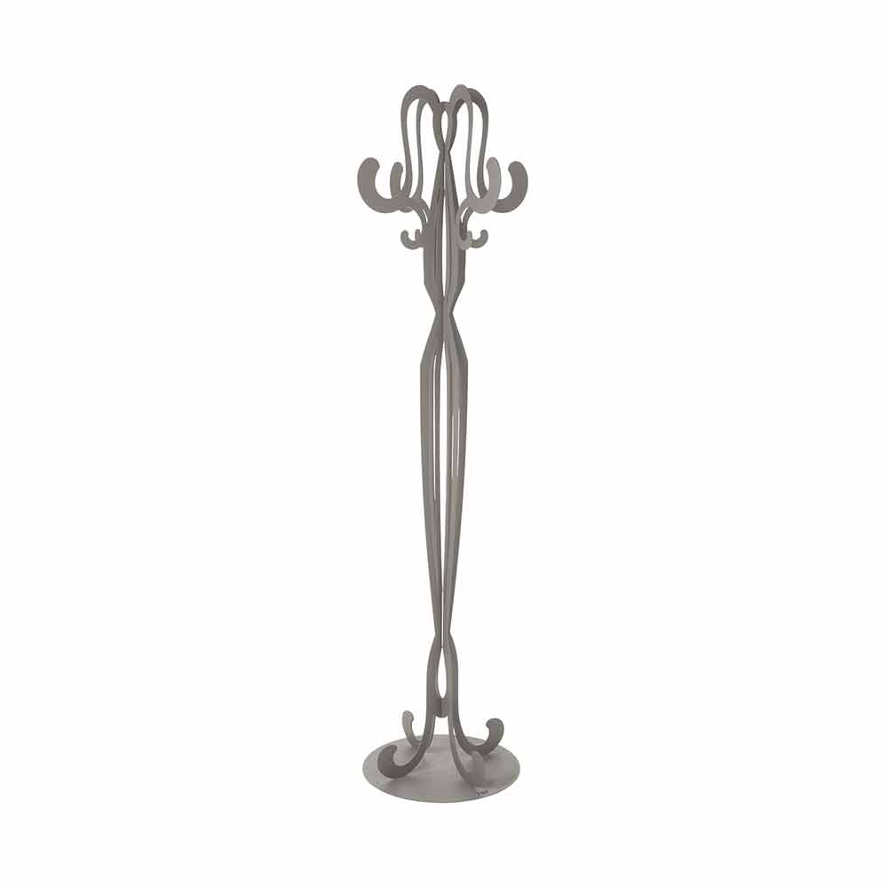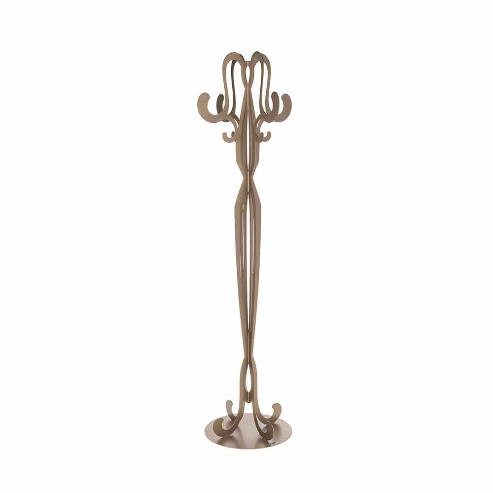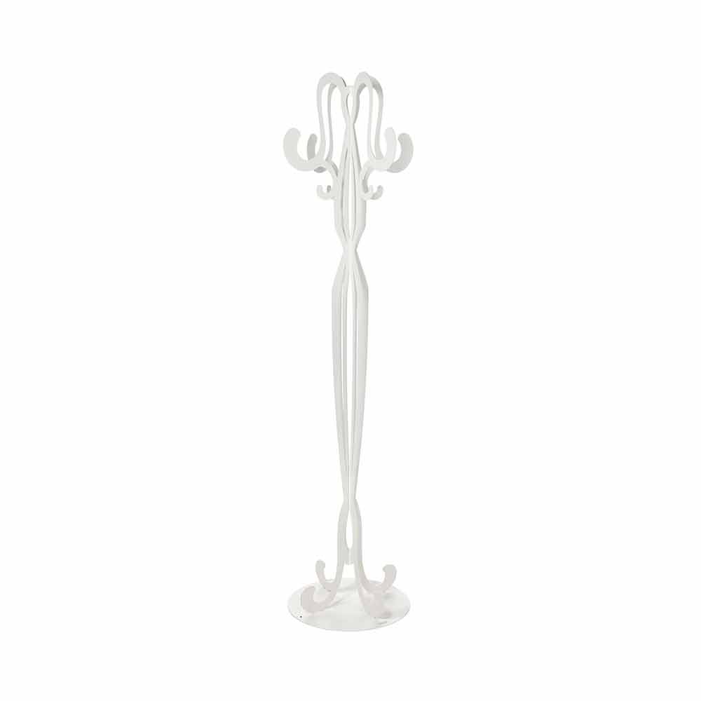 Coat rack with eight hooks from the floor handcrafted in Italy in white iron, bronze, mud or transparent gold.