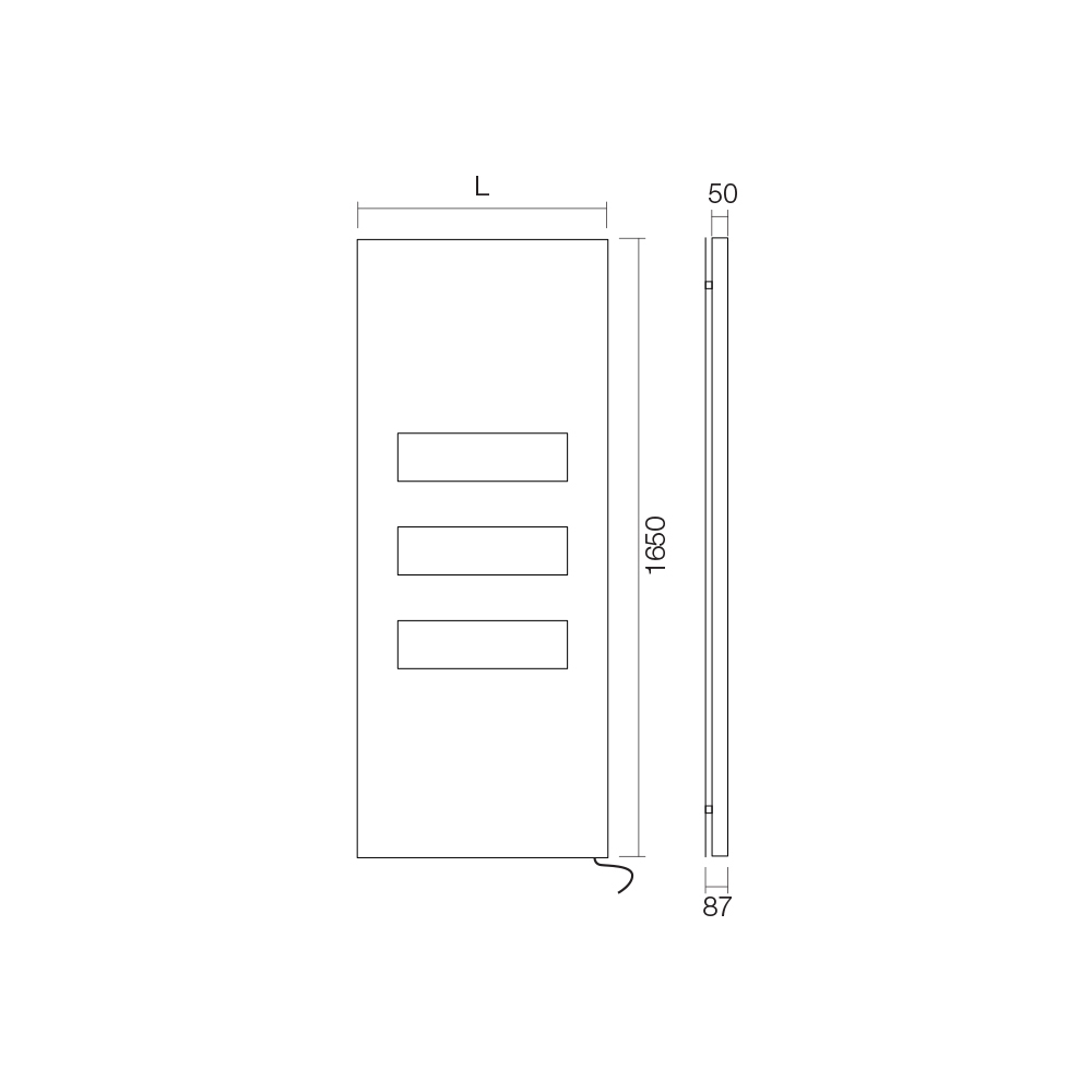 Electric radiant plate in carbon steel entirely made in Italy with wall fixing kit included . Electrification kit positioned at the bottom right.